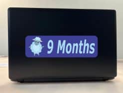 Celebrate the exciting first months of your baby’s life with this month marker sticker. This bumper sticker is 10 inches wide by 3 inches tall when applied and has the words, 11 Month in light blue letters on a dark blue background. The image of a blue lamb stands to the left of the text. If you have any special requests for 9 Month Stickers or any other type of decal or would like to purchase in higher quantities, please give us a shout.