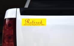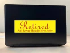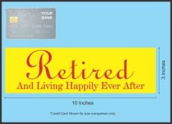 10in x 3in (254mm x 76mm) Retired and Living Happily Ever After Bumper Sticker