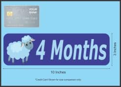 This bumper magnet is 10 inches wide by 3 inches tall when applied and has the words, 4 Months in light blue letters on a royal blue background. The image of a blue lamb stands to the left of the text. If you have any special requests for 4 Month magnets or any other type of decal, please do not hesitate to contact us.