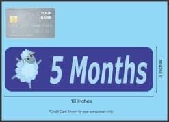 This bumper magnet is 10 inches wide by 3 inches tall when applied and has the words, 5 Months in light blue letters on a royal blue background. The image of a blue lamb stands to the left of the text. If you have any special requests for 5 Month magnets or any other type of decal, please do not hesitate to contact us.