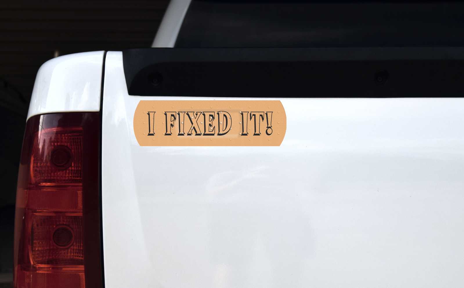 StickerTalk stickers are made to the highest standards. Your I Fixed It Bandage Vinyl Sticker is made using only name brand materials. We start with solvent based inks that are scratch resistant, UV resistant and waterproof. We print that ink onto high quality vinyl that utilizes a special air release technology. This amazing tech incorporates micro channels into the adhesive of the sticker to allow you to smooth out most air bubbles after installation. So there isn’t a need to keep removing and reapplying until you get it right. However, if you do need to remove and reapply the sticker, because it isn’t straight or you just don’t like the location, this special adhesive allow for that too. We have tried many brands and many different product types and this is the best product available for bumper stickers. To make your new I Fixed It Bandage Vinyl Sticker even better and to insure that it will last for years in most outdoor environments, we laminate every one with a PVC UV resistant film. This provides extra protection against UV rays and scratches and adds more life to your sticker. This step is one that most online sellers skip because it is time consuming and costly. However, at StickerTalk, your satisfaction is our primary concern. We won’t sell an I Fixed It Bandage Vinyl Sticker unless we know it is the best we can make.