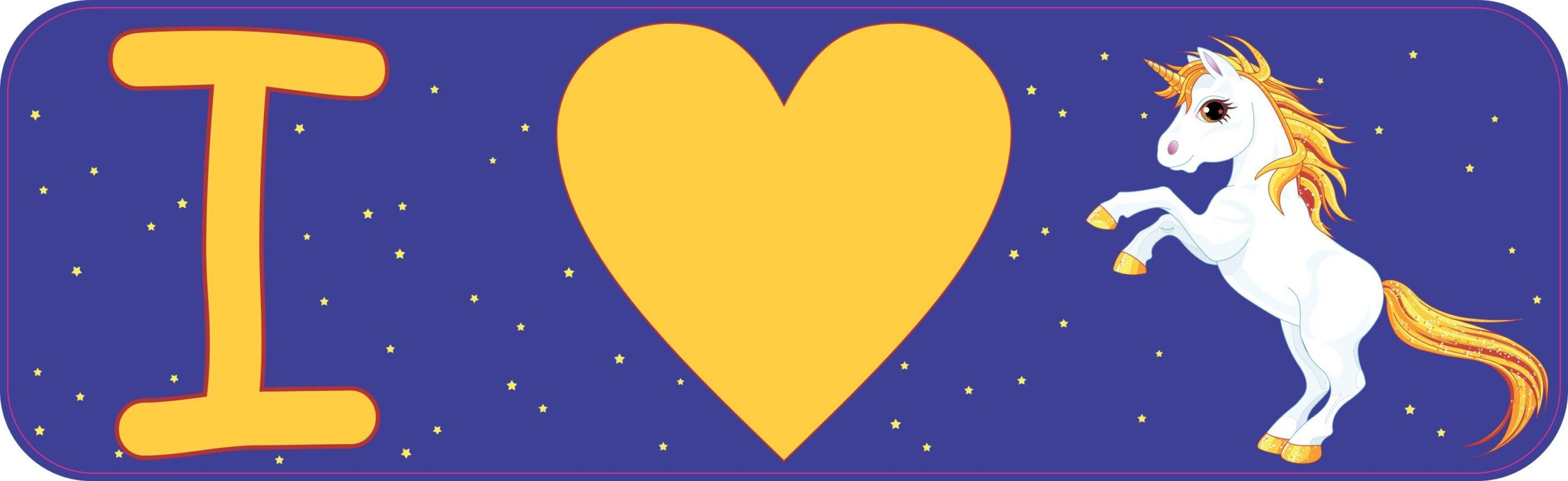 10in x 3in (254mm x 76mm) I LOVE UNICORNS BUMPER HEART MAGNETS