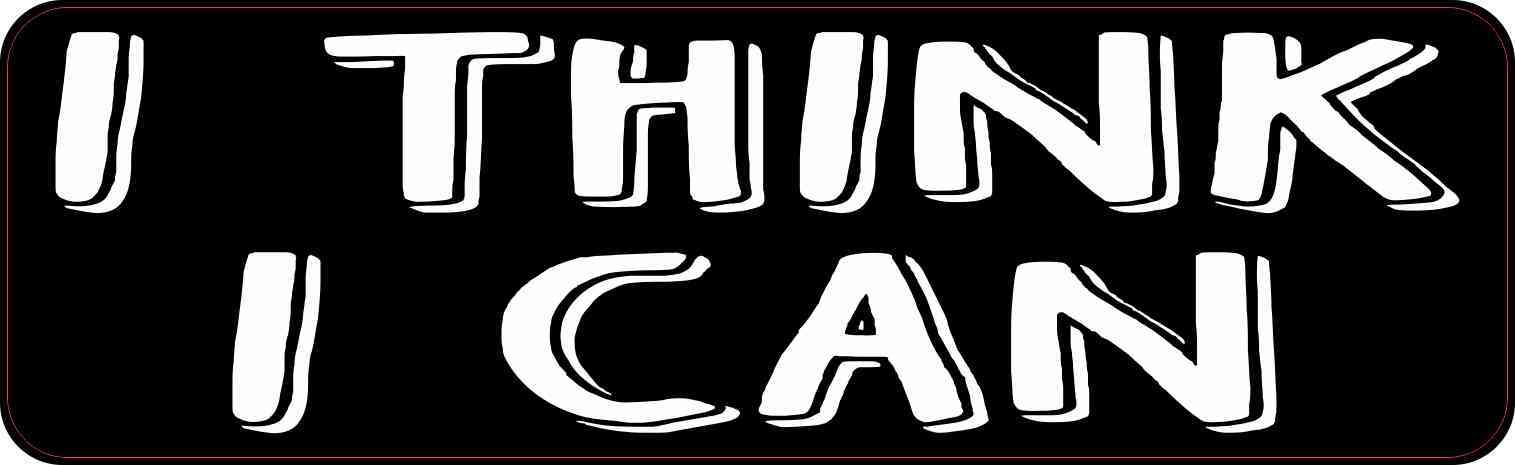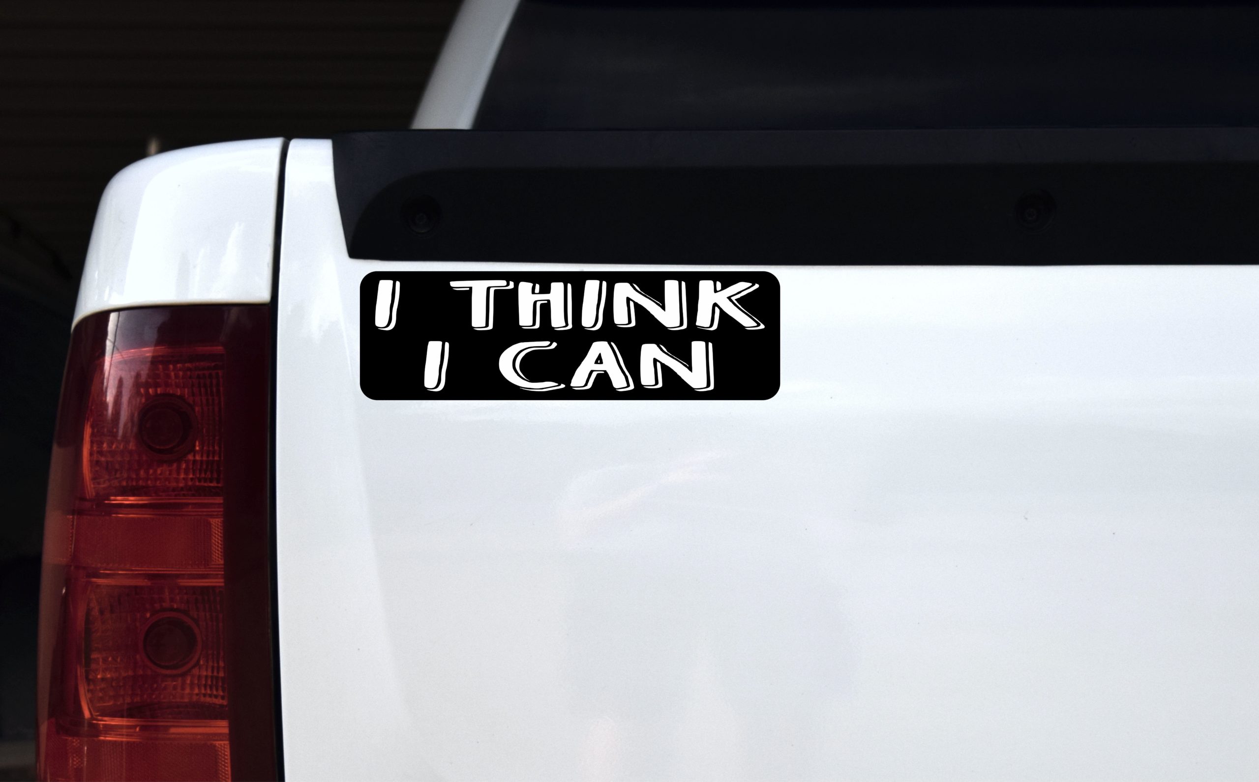 This sticker is 10 inches wide by 3 inches tall when applied. It features the words, I THINK I CAN, in white letters on a black background. This carefully crafted product is a witty way to motivate and encourage! However, it only attracts ferromagnetic metals.
