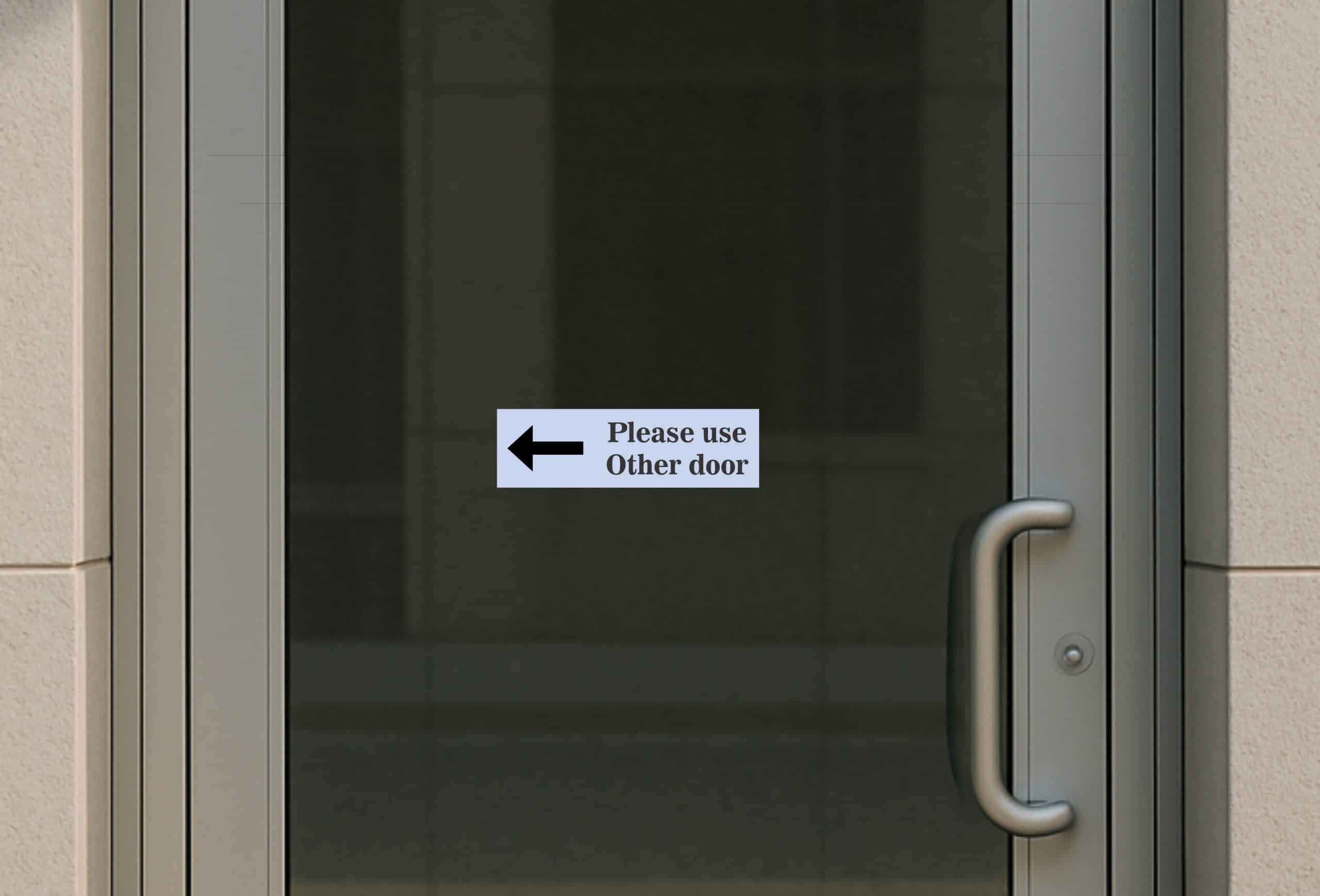10in x 3in (254mm x 76.2mm) Left Arrow Please Use Other Door Sticker