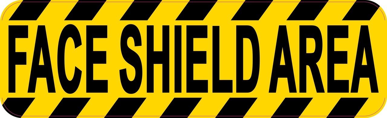 This magnet is 10 inches wide by 3 inches tall when applied.  It features the words, FACE SHIELD AREA, in black letters on a yellow background.  The top and bottom borders of the magnet are decorated with yellow and black, diagonal stripes.  This quality-made product is durable and easily visible, making it ideal for display in a variety of settings and scenarios.  However, it only attracts ferromagnetic metals.