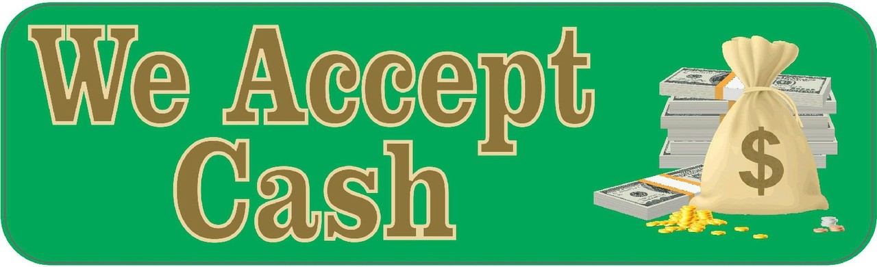10in x 3in (254mm x 76.2mm) We Accept Cash Sticker