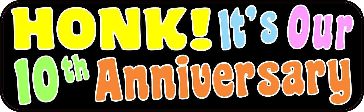 10in x 3in (254mm x 76.2mm) Honk! It’s Our Tenth Anniversary Bumper Sticker