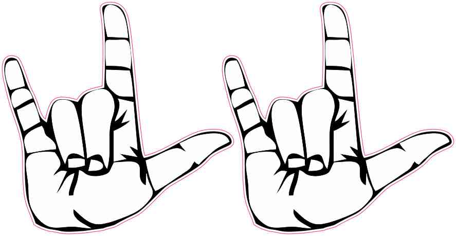 This product contains two stickers; each sticker is 3 inches wide by 3 inches tall when applied. Each sticker depicts a black and white hand performing the American Sign Language sign for I Love You. These stickers are die cut, so minimal white background will remain after application. The pink lines in the image show where the stickers are cut; the pink lines are not printed on the stickers. These carefully crafted stickers are a great way to showcase your passion for ASL! They can be proudly displayed on vehicles, cups and tumblers, luggage, and other hard, flat surfaces.