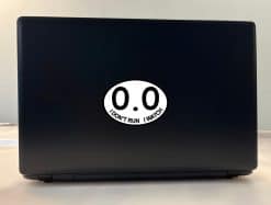 This oval-shaped sticker is 4.25 inches wide by 3 inches tall when applied. The number, 0.0, is printed in the center of the sticker in black letters on the sticker’s white background. The words, I DON’T RUN I WATCH, are printed near the bottom of the sticker in black letters that curve to complement the sticker’s black border. This quality-made product is the perfect novelty for the unmotivated athlete! It can be proudly displayed on vehicles, cups and tumblers, tablets, and other flat, hard surfaces.