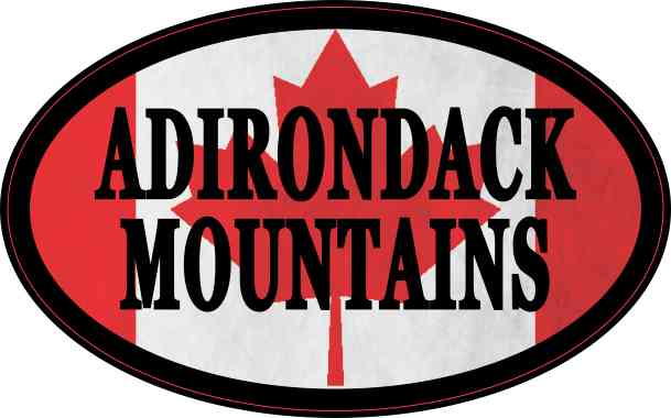 This oval-shaped sticker is 4 inches wide by 2.5 inches tall when applied.  It features the name, ADIRONDACK MOUNTAINS, in black letters.  The sticker’s background is decorated with a Canadian flag, and a black border decorates the edges of the sticker.  This quality-made product is the perfect novelty for visitors to these picturesque land forms!  It can be proudly displayed on luggage, vehicles, cups and tumblers, and other hard, flat surfaces.