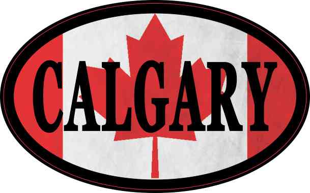 4in x 2.5in (101.6mm x 63.5mm) Oval Canadian Flag Calgary Sticker