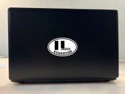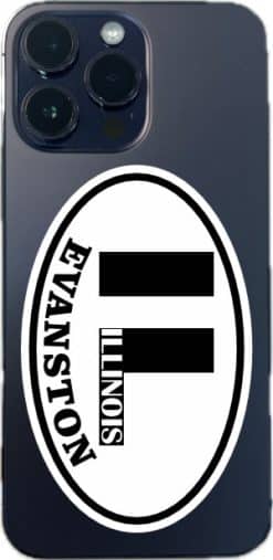 This oval-shaped sticker is 4 inches wide by 2.5 inches tall when applied and has a white background. The state abbreviation, IL, is printed in the center of the sticker in black letters. The state name, ILLINOIS, is printed in white letters inside the L. The city name, EVANSTON, is printed below in black letters that curve to compliment the sticker’s black border. The pink line in the image shows where the sticker is cut; the pink line is not printed on the sticker. This quality-made product is the perfect novelty for both locals and visitors to this unique city! It can be proudly displayed on luggage, vehicles, cups and tumblers, tablets, and other flat, hard surfaces.