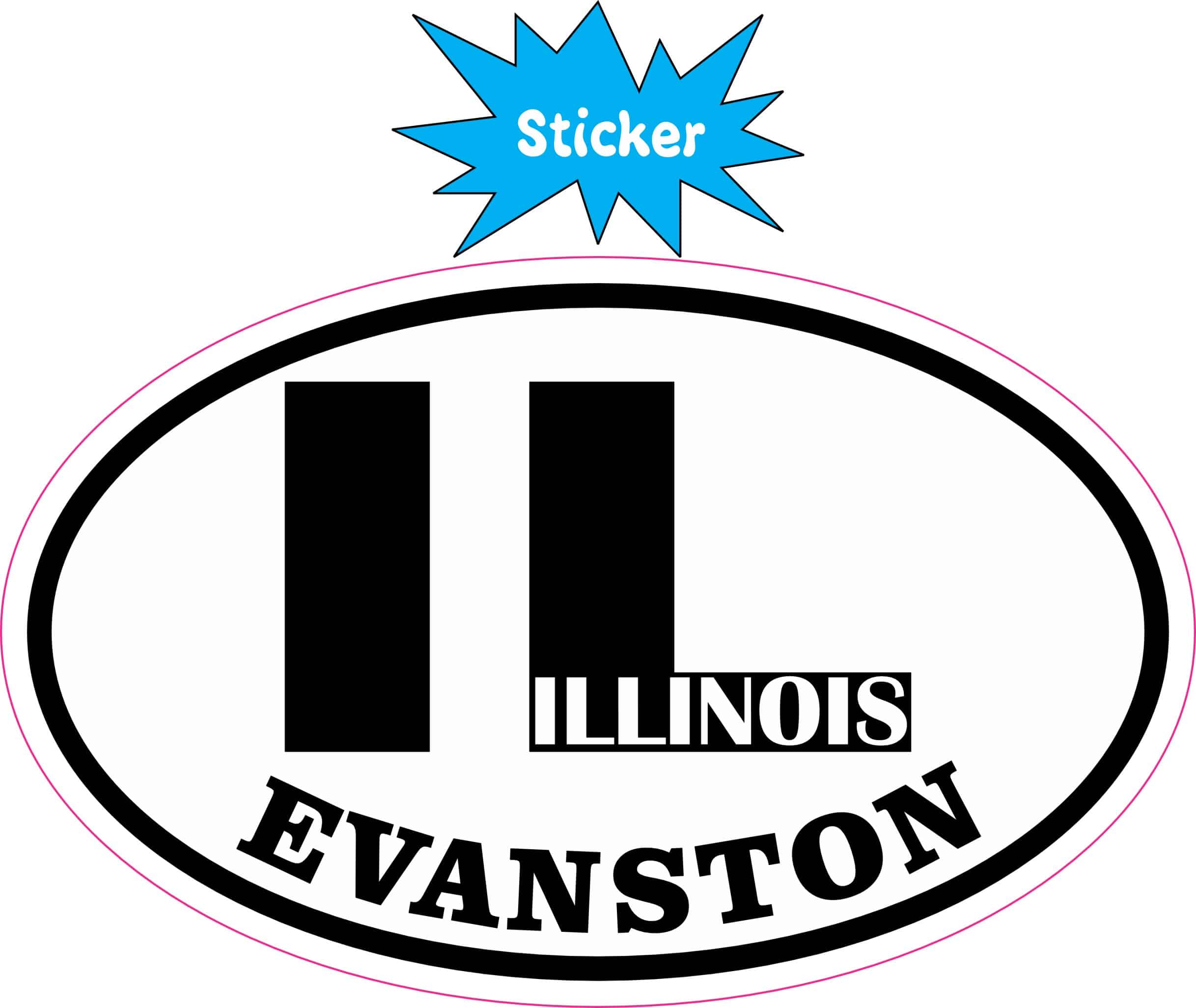 4in x 2.5in (101.6mm x 63.5mm) Oval IL Evanston Illinois Vinyl Sticker