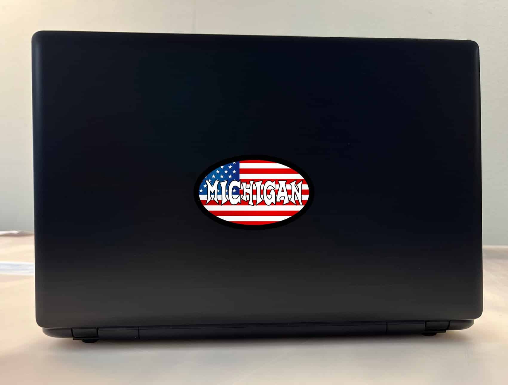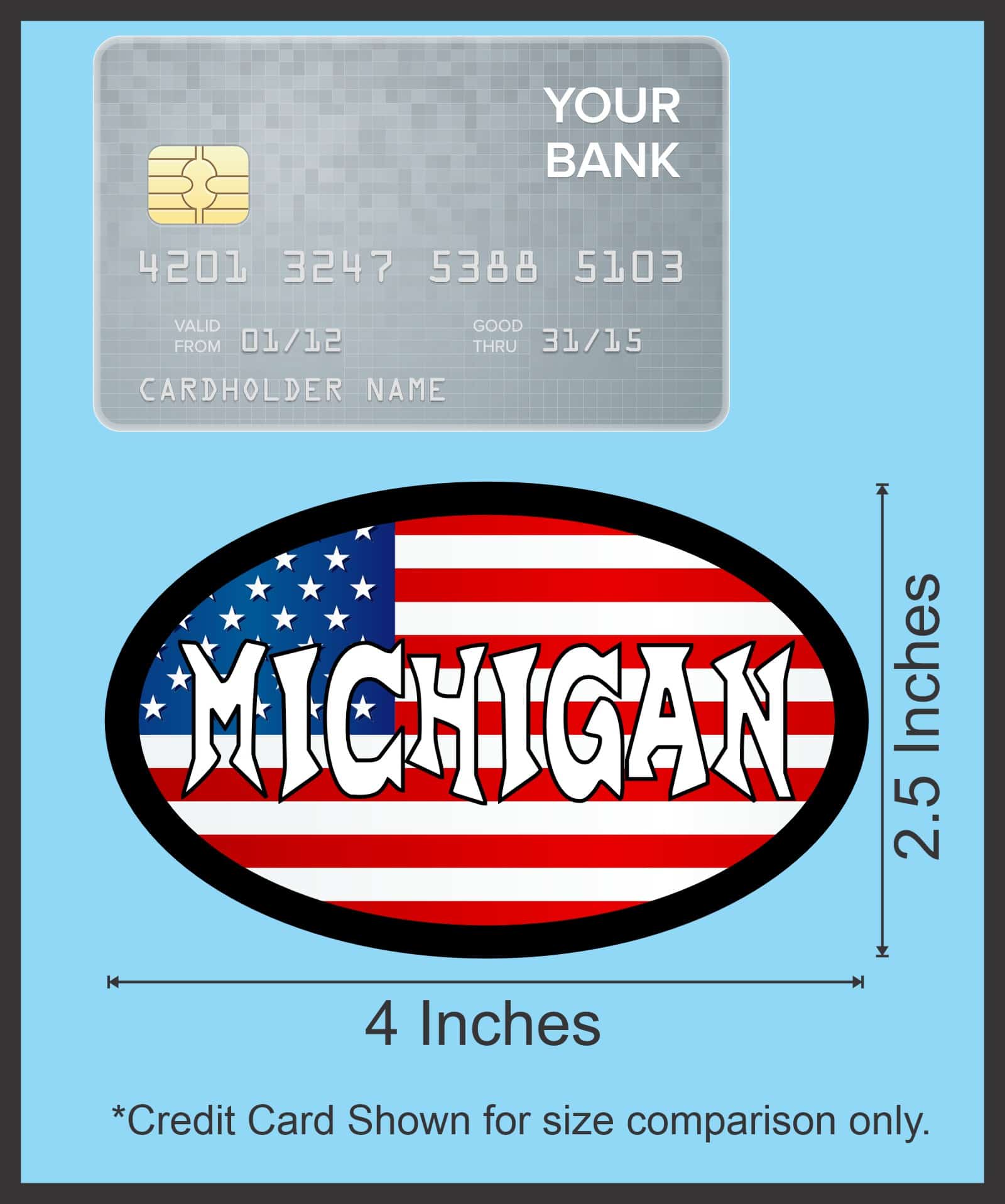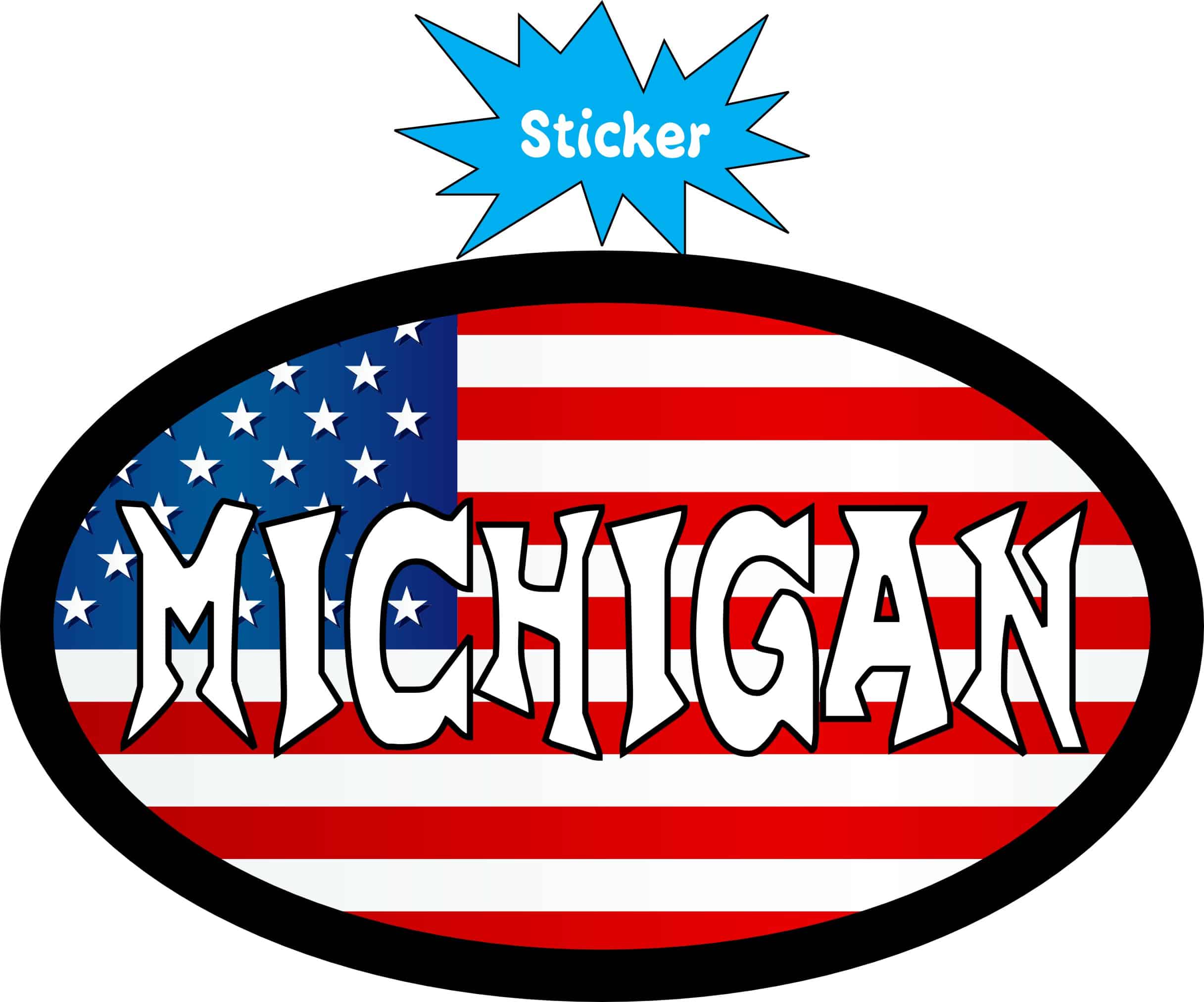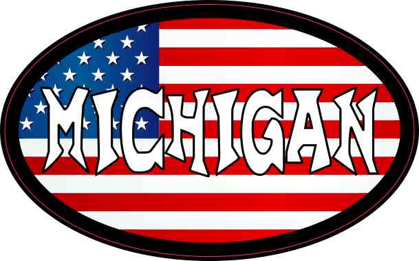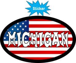 4in x 2.5in (101.6mm x 63.5mm) Oval US Flag Michigan Vinyl Sticker
