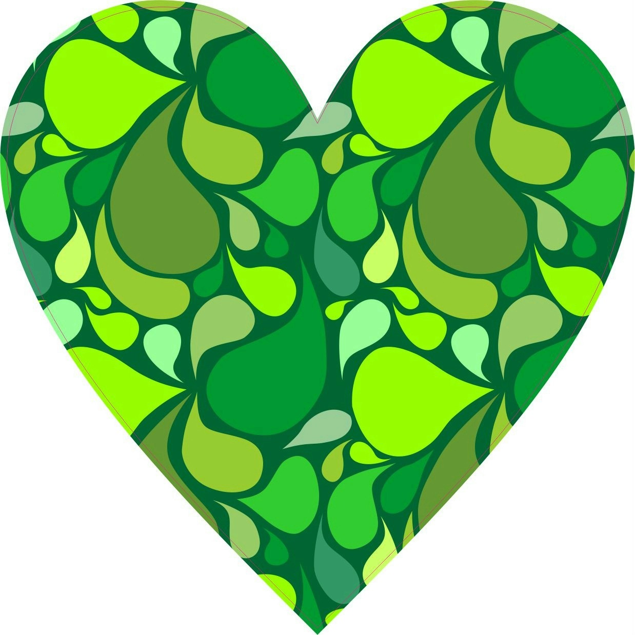This bumper sticker is 4 inches wide by 4 inches tall when applied. It is decorated with a green paisley pattern and die cut into the shape of a heart, meaning no white border will show when applied. This sticker is a great way to add a splash of personality to vehicles, cups and tumblers, tablets, and other flat, hard surfaces.