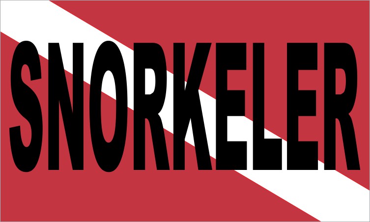 This magnet measures 5 inches wide by 3 inches tall in a rectangular shape. The design is that of the notable red Diver Down flag with the diagonal white stripe. However, this particular magnet bears the word, SNORKELER, in the foreground of the magnet. This magnet is great for any diver; as a gift or just for yourself!