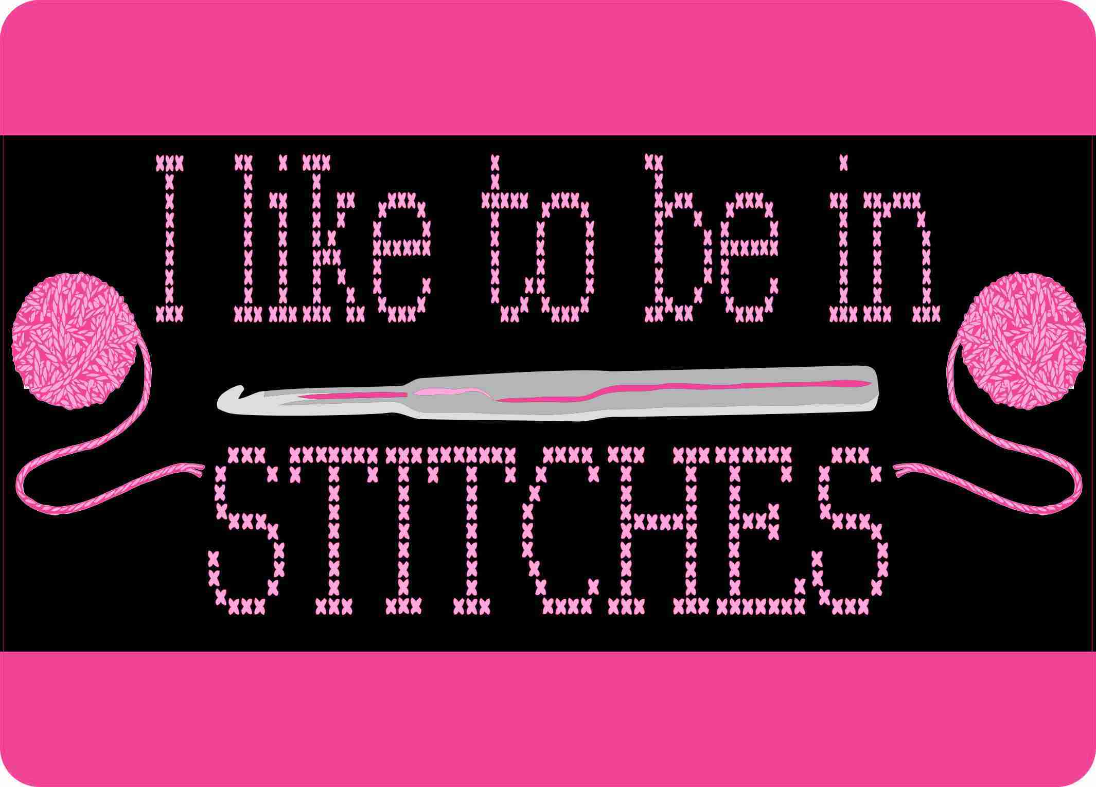 This hobby sticker is for anyone who loves or likes to sew, stitch, or crochet. It has a magenta background with a black rectangle in the center. It yields the words “I like to be in STITCHES” in a cross stitching font. There are two balls of yarn on each side of the text with a crochet hook in the center.