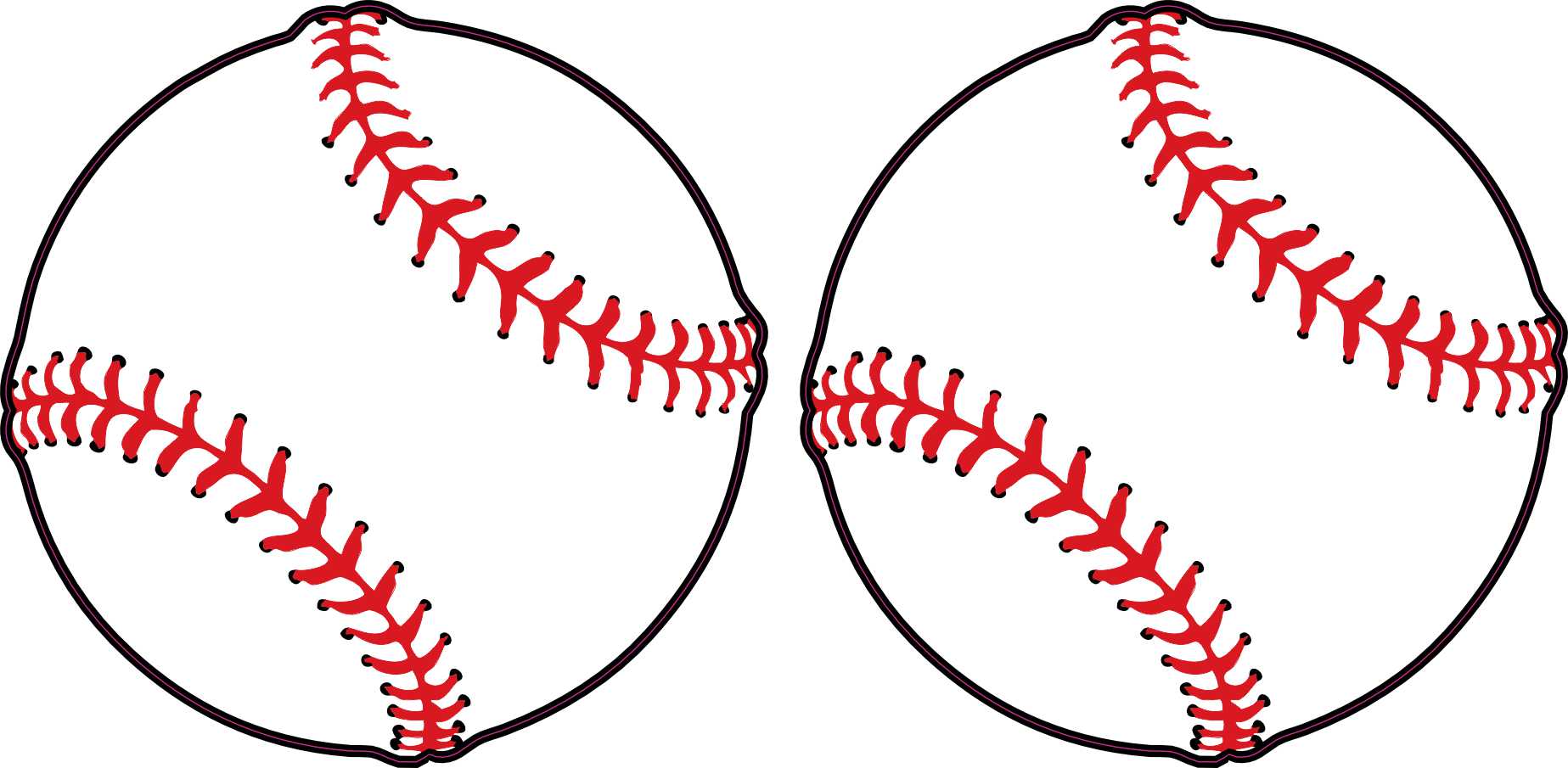 This is a single sheet of 2 stickers, each measuring 3 inches tall by 3 inches wide. The stickers depict a baseball with a black outline. The pink lines in the image show where the stickers are cut; however, the pink lines are not printed on the stickers. This is the perfect product for any baseball fan!