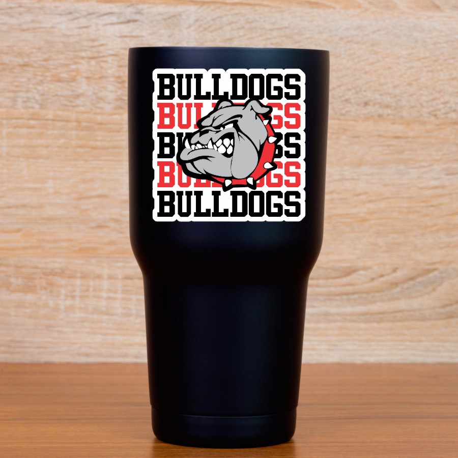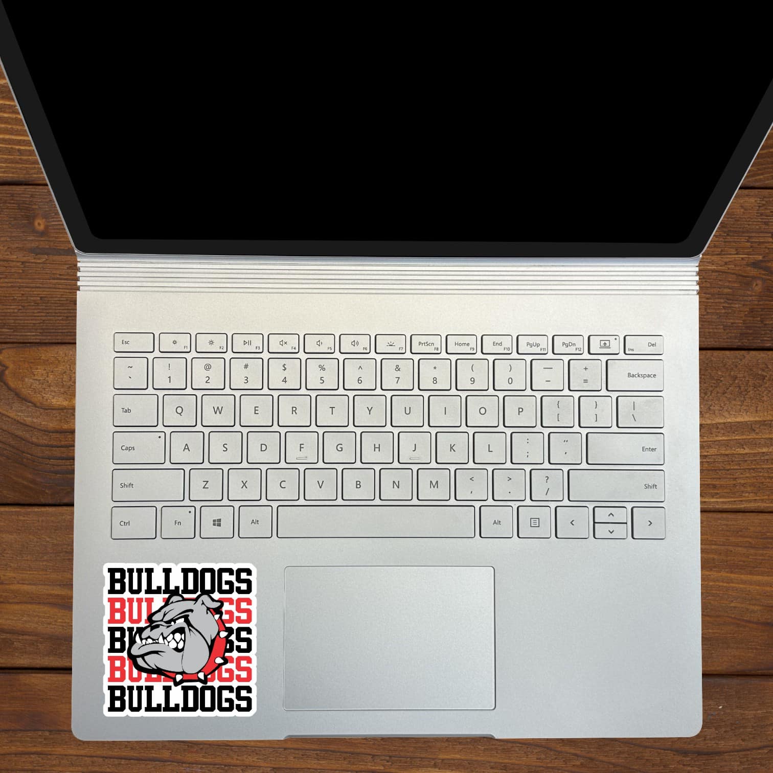 Show your Bulldogs pride with this fierce mascot vinyl sticker featuring bold red and black colors – perfect for cars, laptops, and more!
