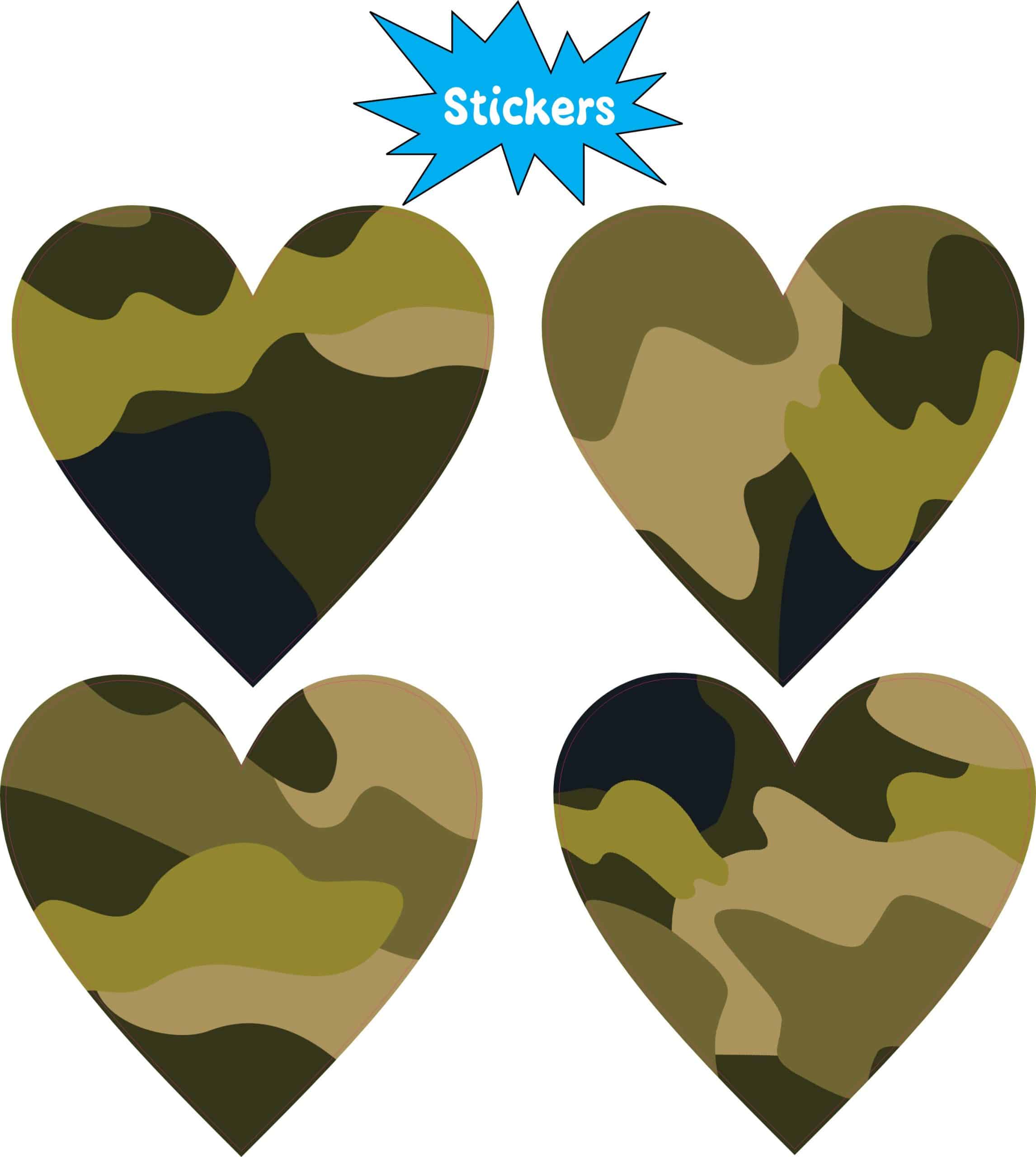 StickerTalk Camo Heart Vinyl Stickers, 1 sheet of 4 stickers, 2
