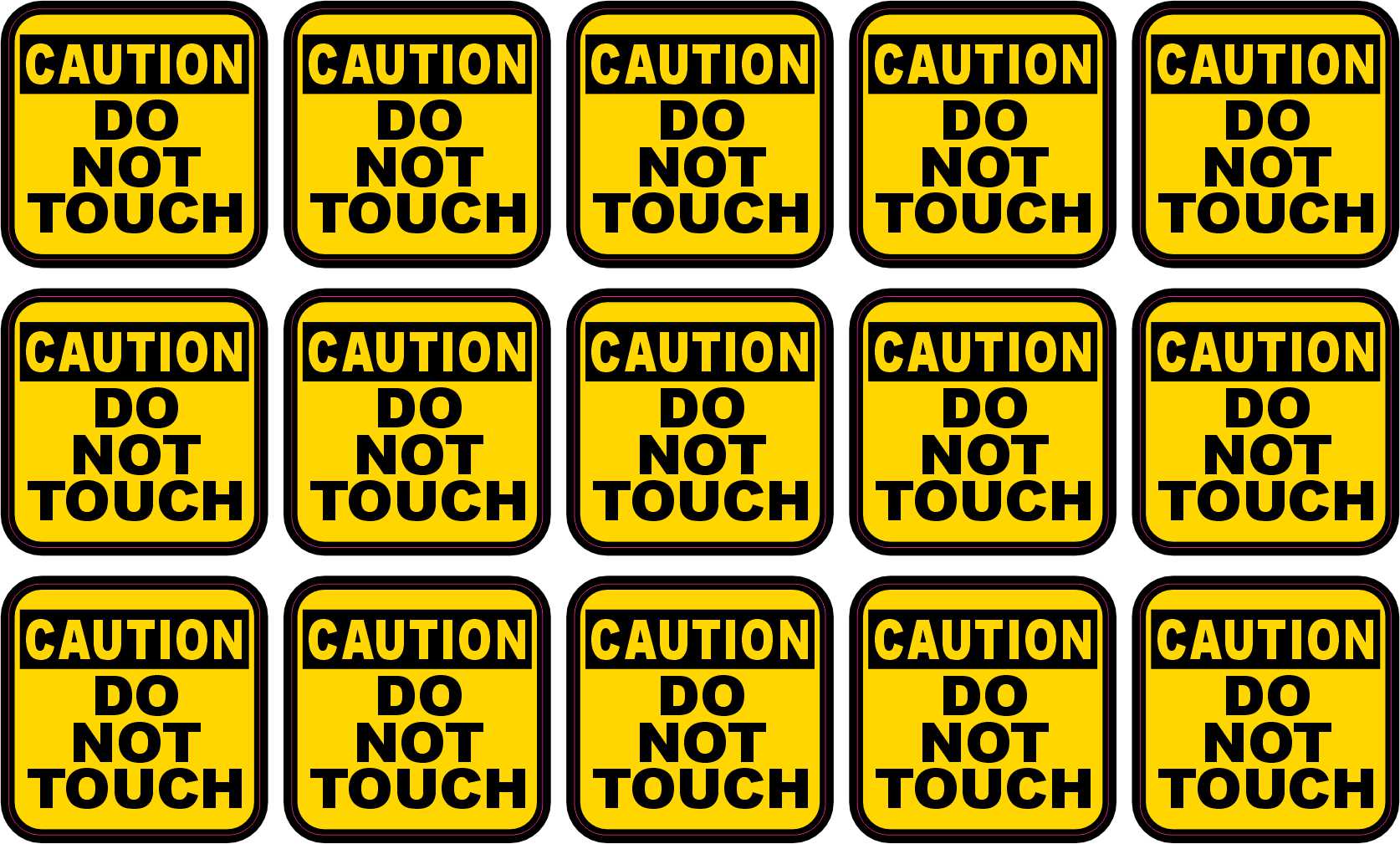 1 inches by 1 inches (25.4 mm x 25.4 mm) Caution Do Not Touch 15 Pack Vinyl Sticker Sheet