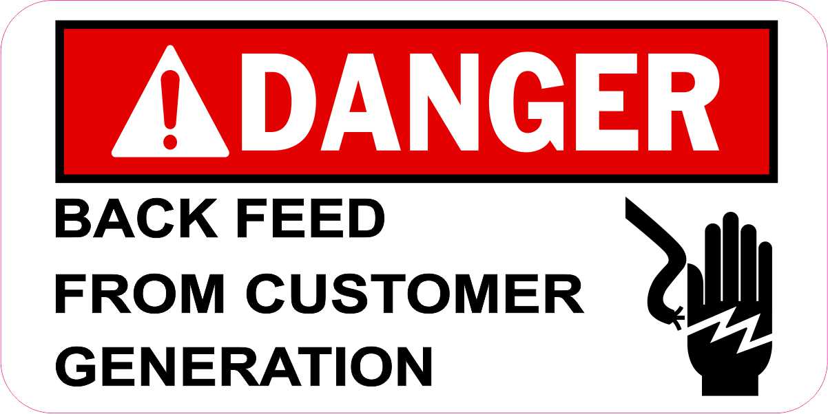 4in x 2in (101.6mm x 50.8mm) Danger Back Feed From Customer Generation Vinyl Sticker