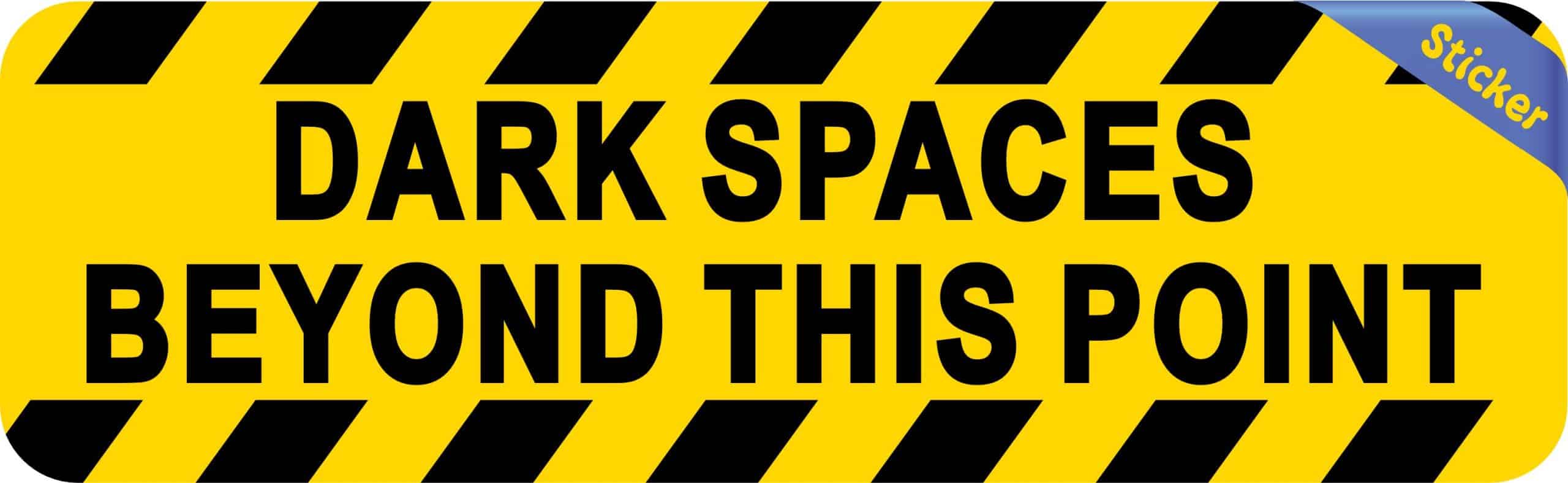 10 inches by 3 inches (254 mm x 76.2 mm) Dark Spaces Beyond This Point Vinyl Sticker