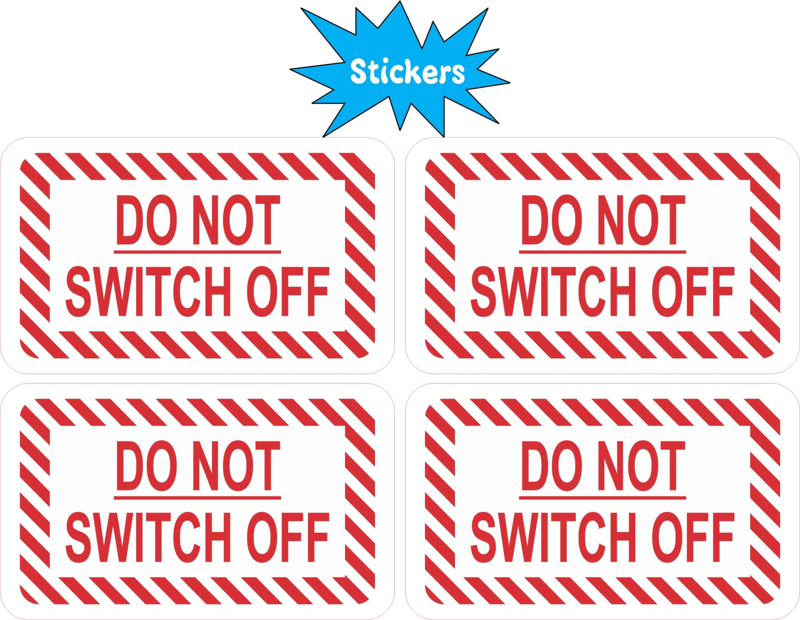 StickerTalk Do Not Switch Off Warning Stickers, 1 sheet of 4 stickers, 2.5 inches by 1.5 inches each