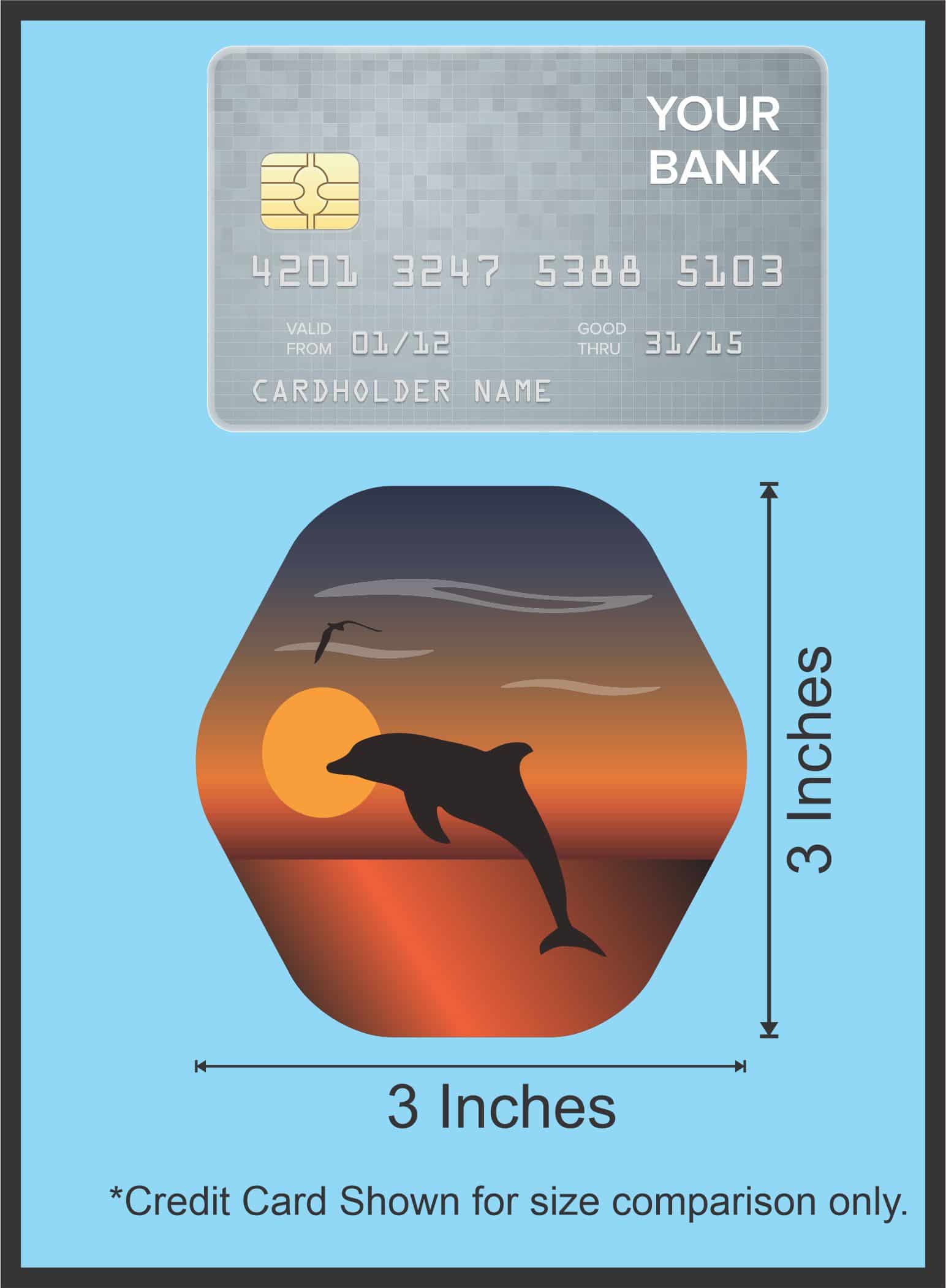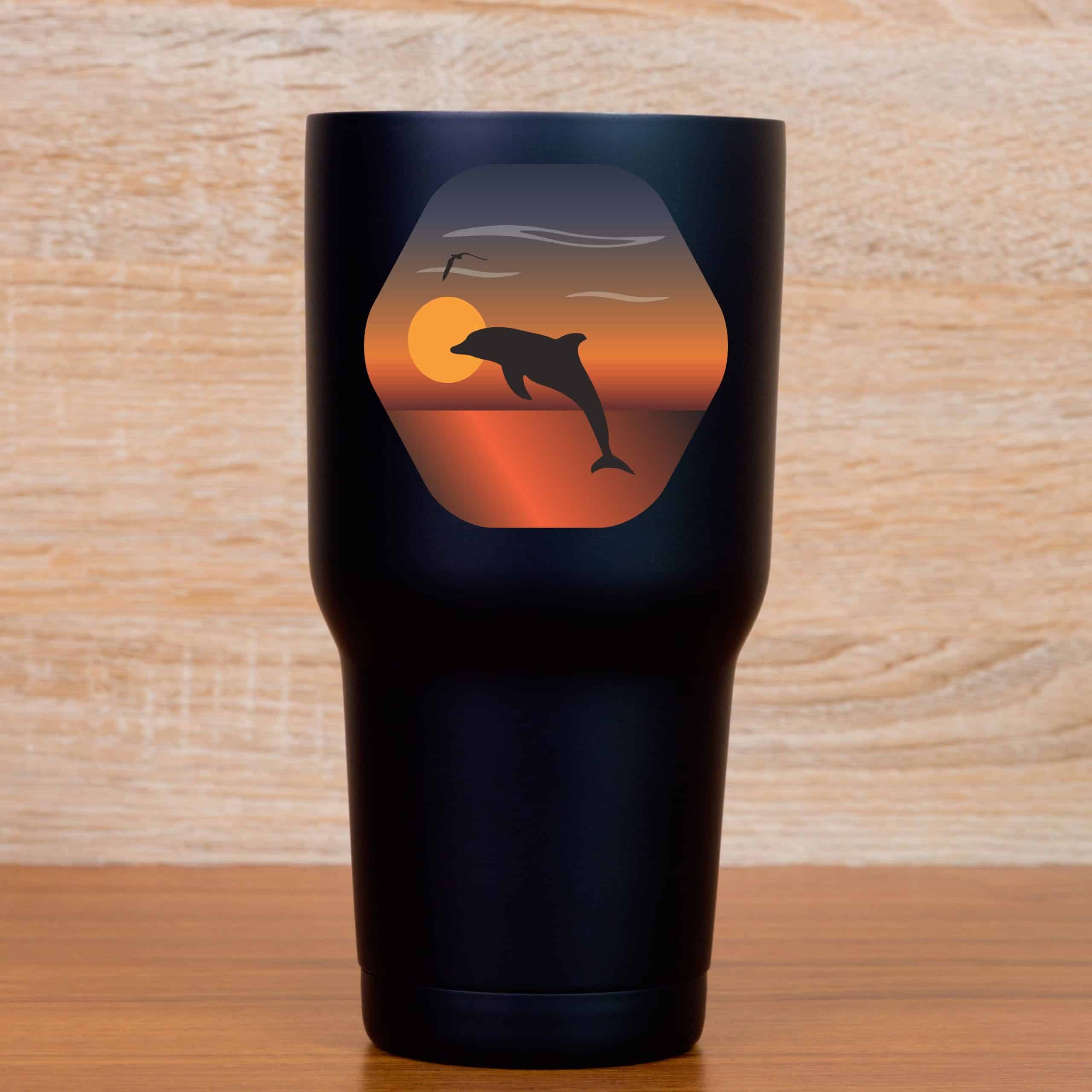 3 inches by 3 inches (76.2 mm x 76.2 mm) Dolphin Sunset Vinyl Stickers