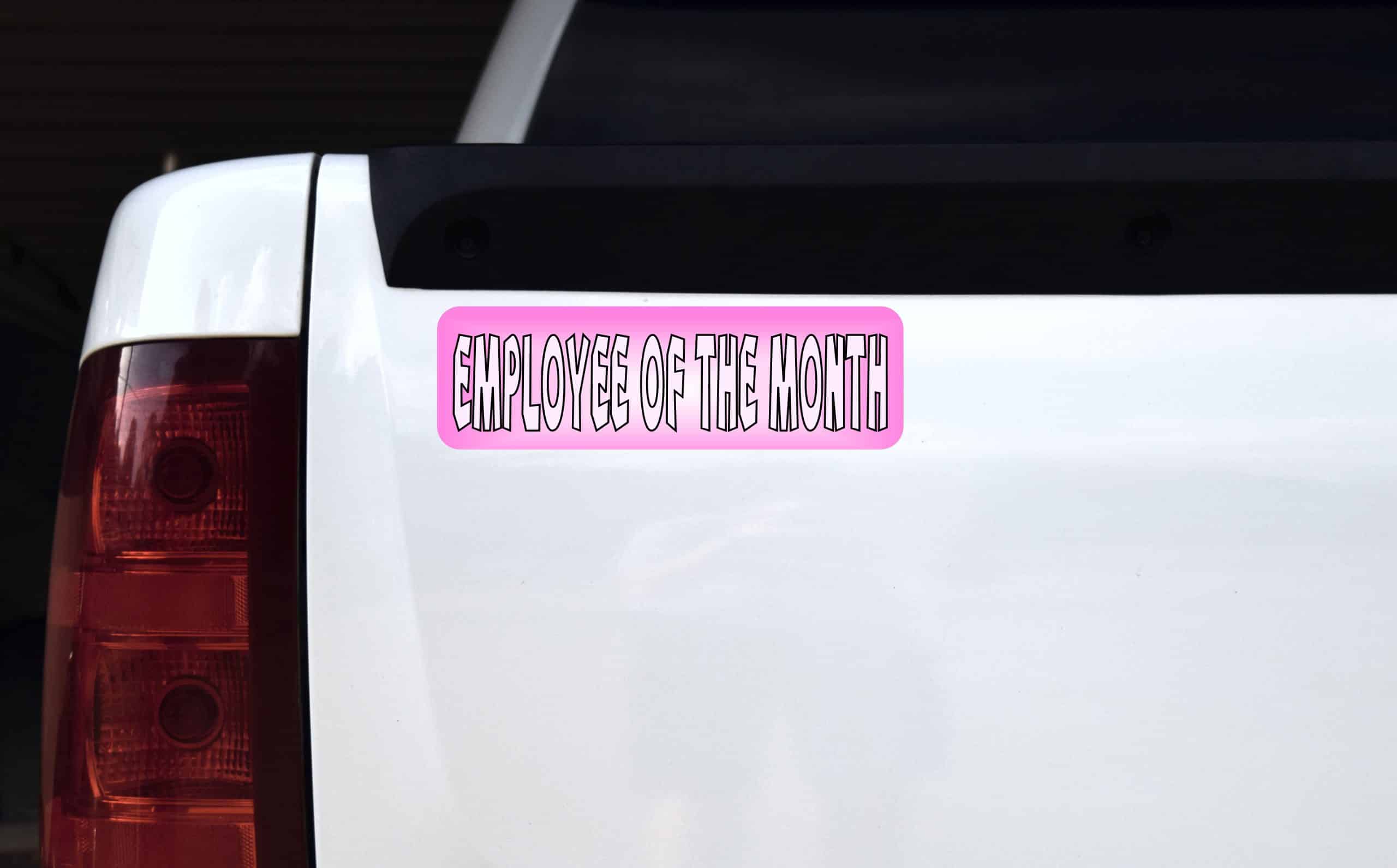 10 inches by 3 inches (254 mm x 76.2 mm) Employee of the Month Pink Vinyl Sticker