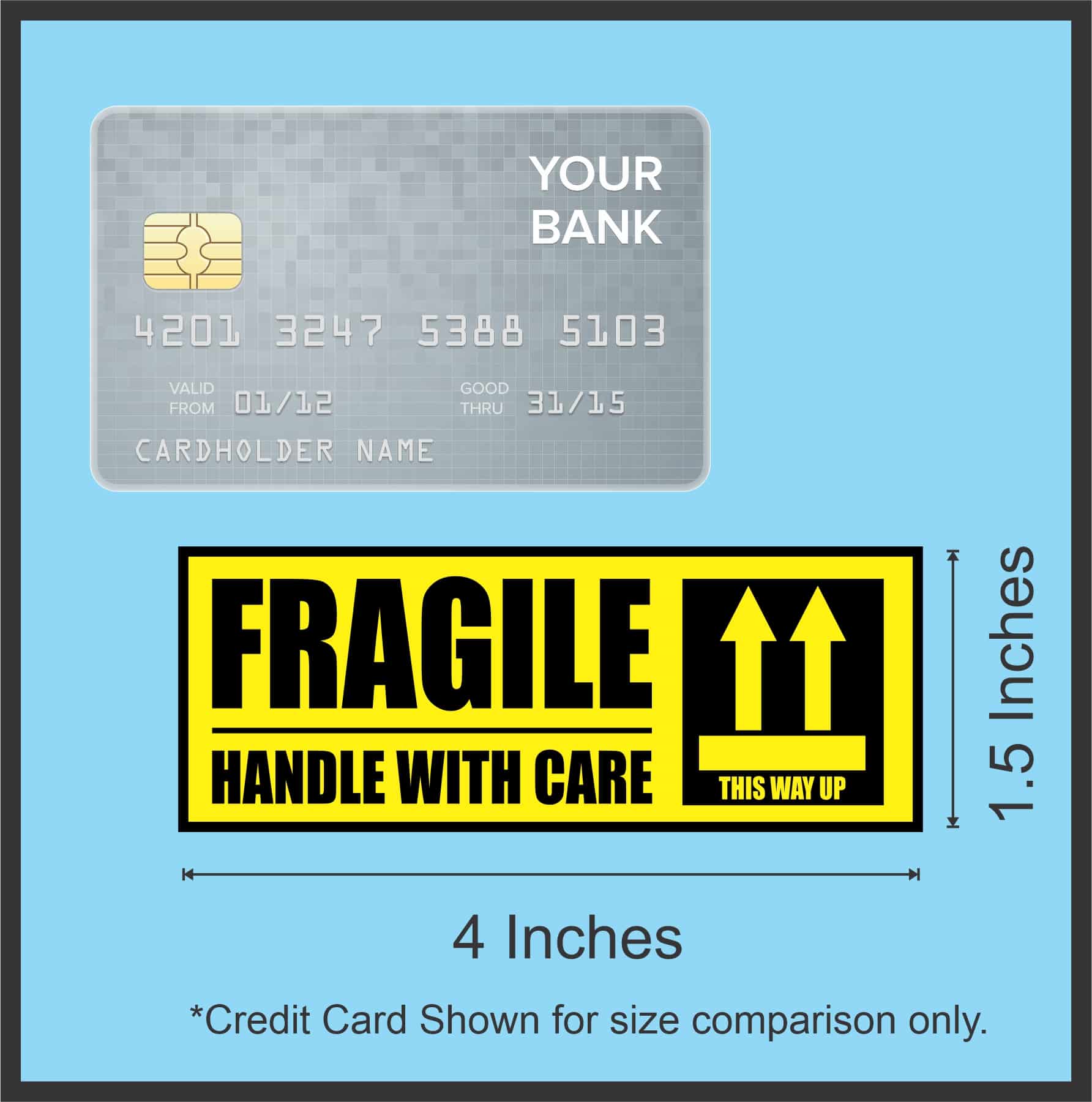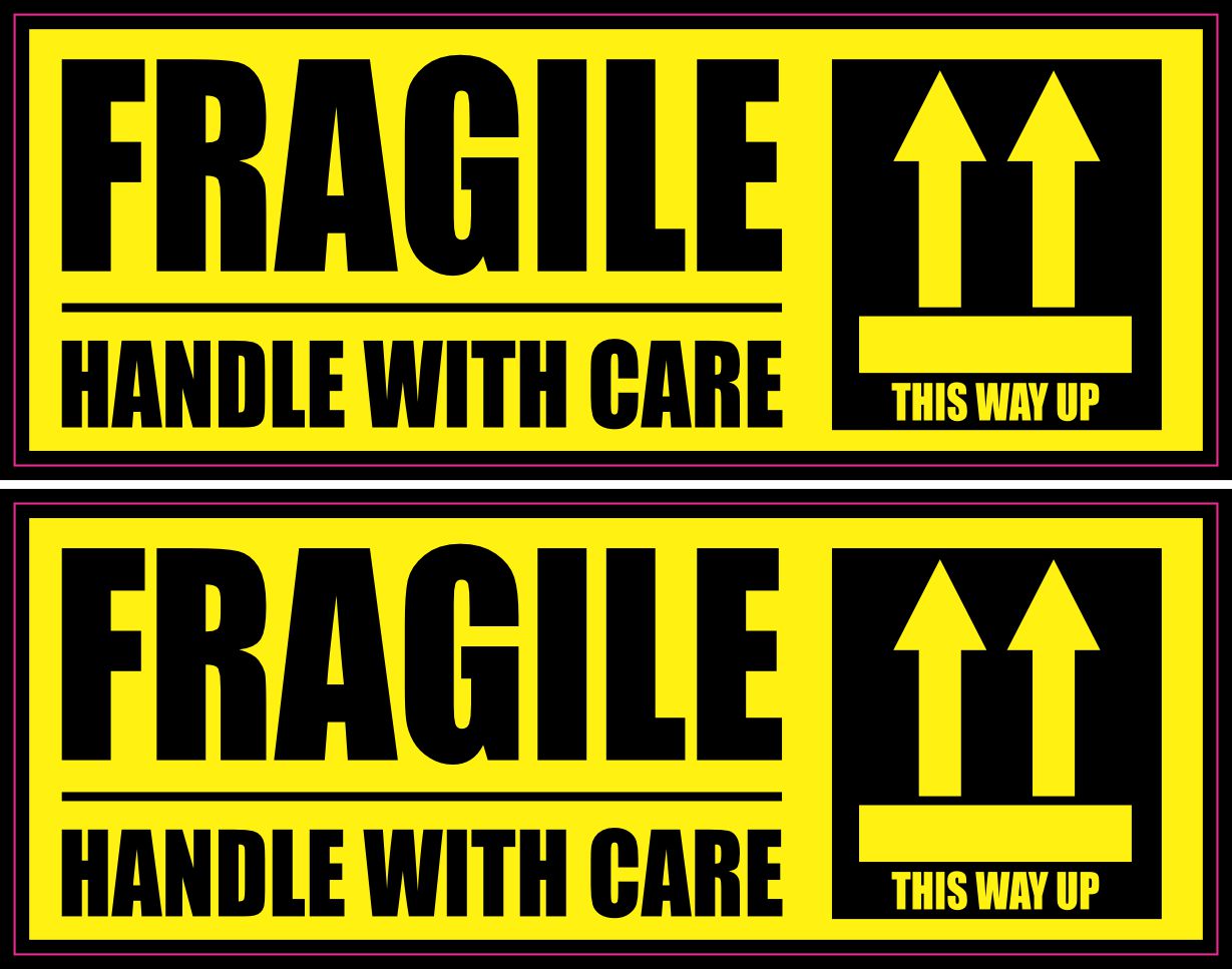 4 inches by 1.5 inches (101.6 mm x 38.1 mm) Fragile Handle with Care Sticker Sheet