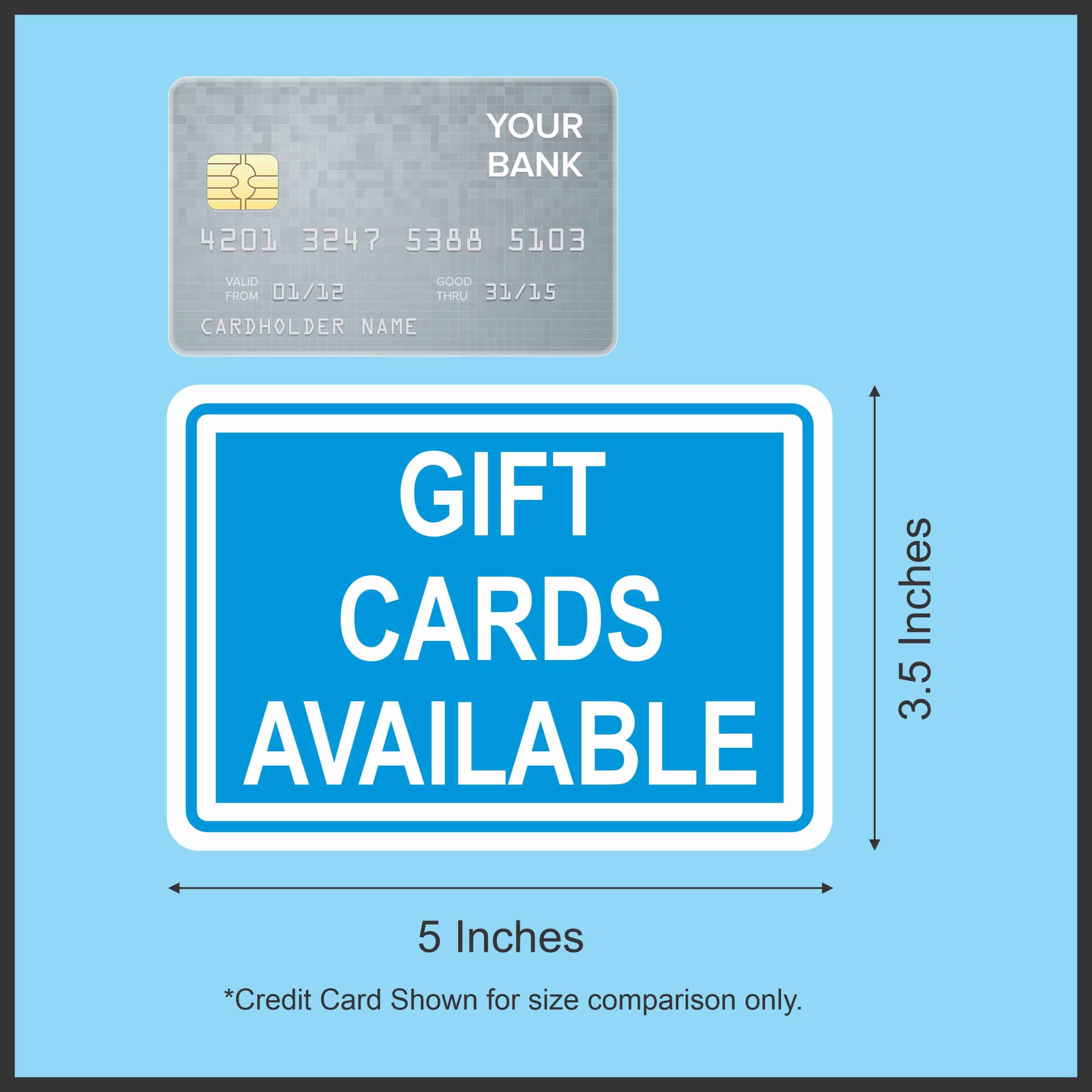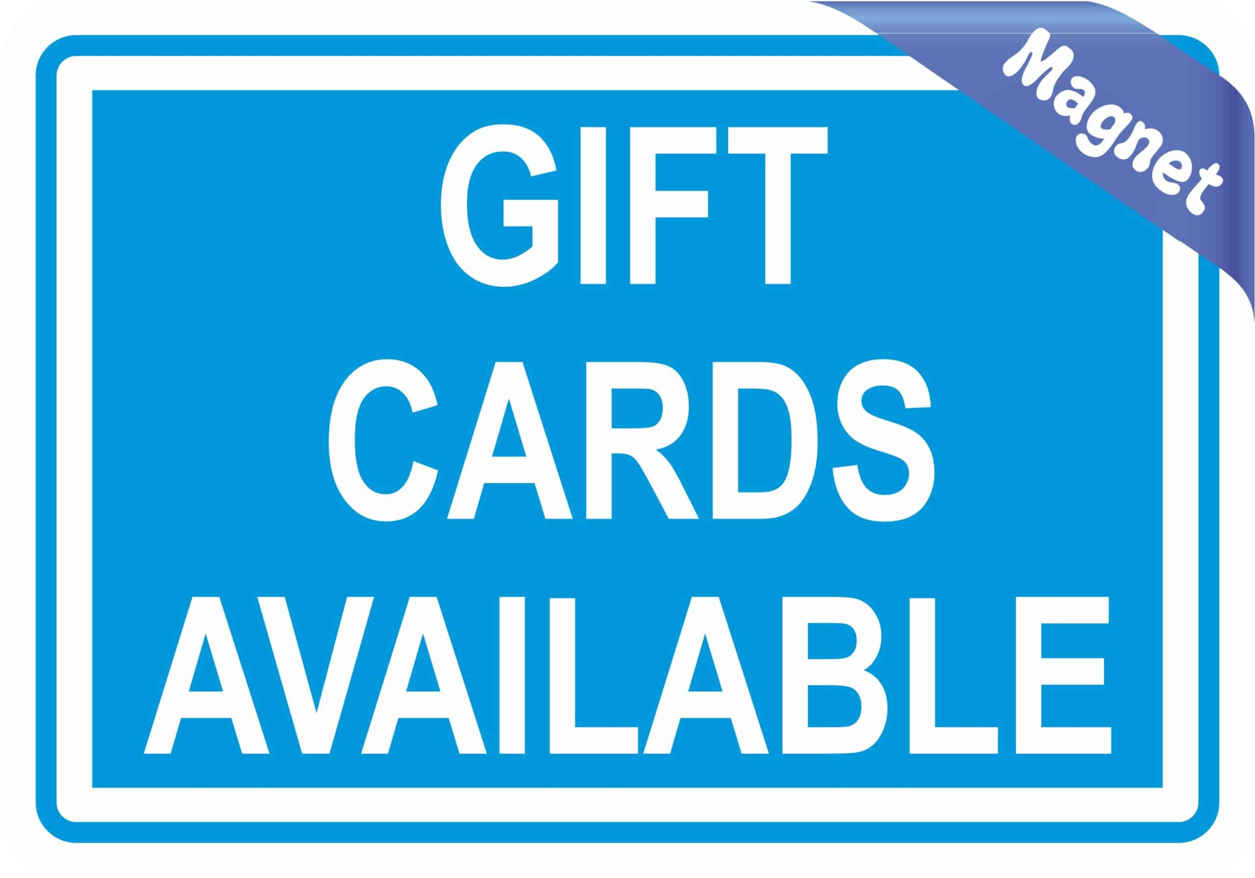 This magnet measures 5 inches wide by 3.5 inches tall. This professional vinyl magnet features bold white text reading “GIFT CARDS AVAILABLE” on a vibrant blue background. This removable magnet is ideal for retail stores, restaurants, service businesses, and any establishment offering gift cards. Made in the USA with high-quality materials, this sign provides a clear, professional way to advertise gift card availability to customers. The bold blue and white color scheme ensures maximum visibility and readability from a distance.