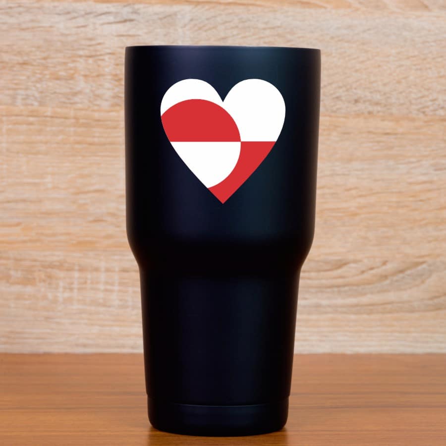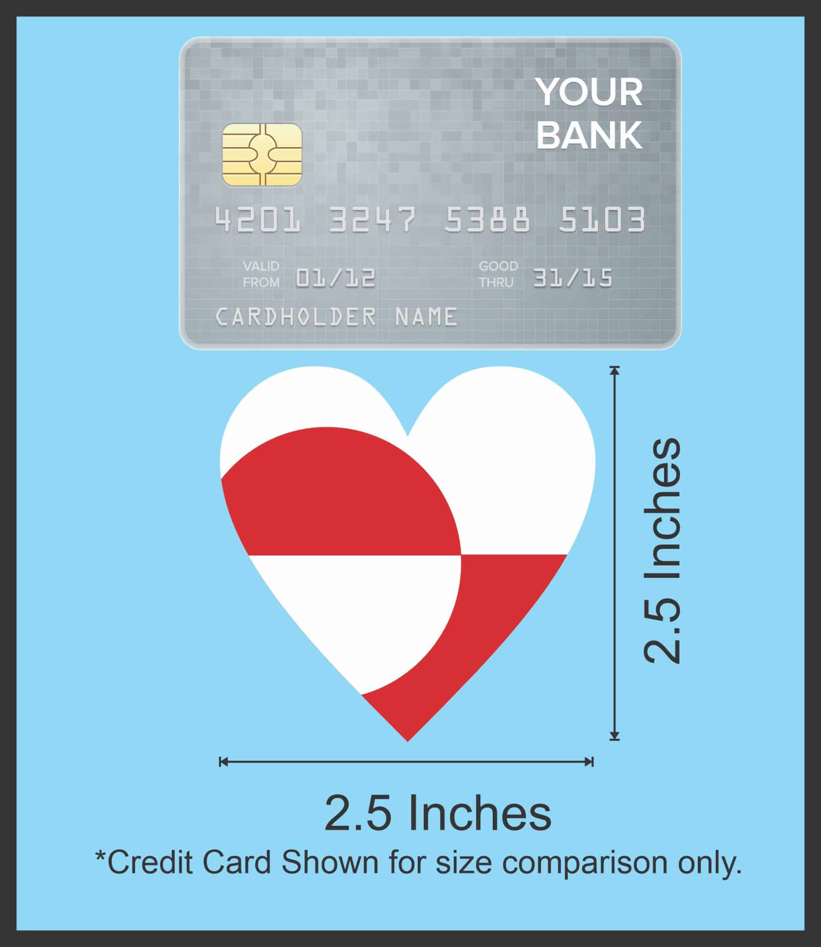 This is 1 sheet of 2 stickers. Each sticker measures 2.5 inches wide and 2.5 inches tall. They are of the Greenland flag cut into the shape of a heart. These stickers are a great way to show your love for Greenland! They look beautiful when applied to a flat smooth surface.