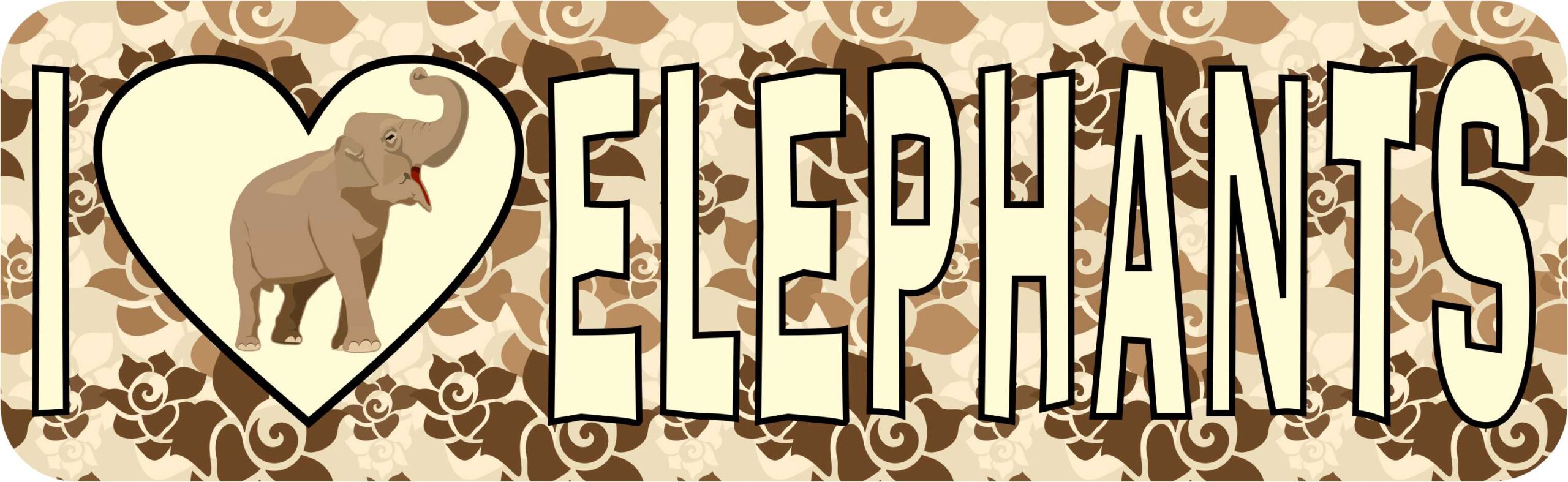10in x 3in (254mm x 76.2mm) I Love Elephants Vinyl Sticker