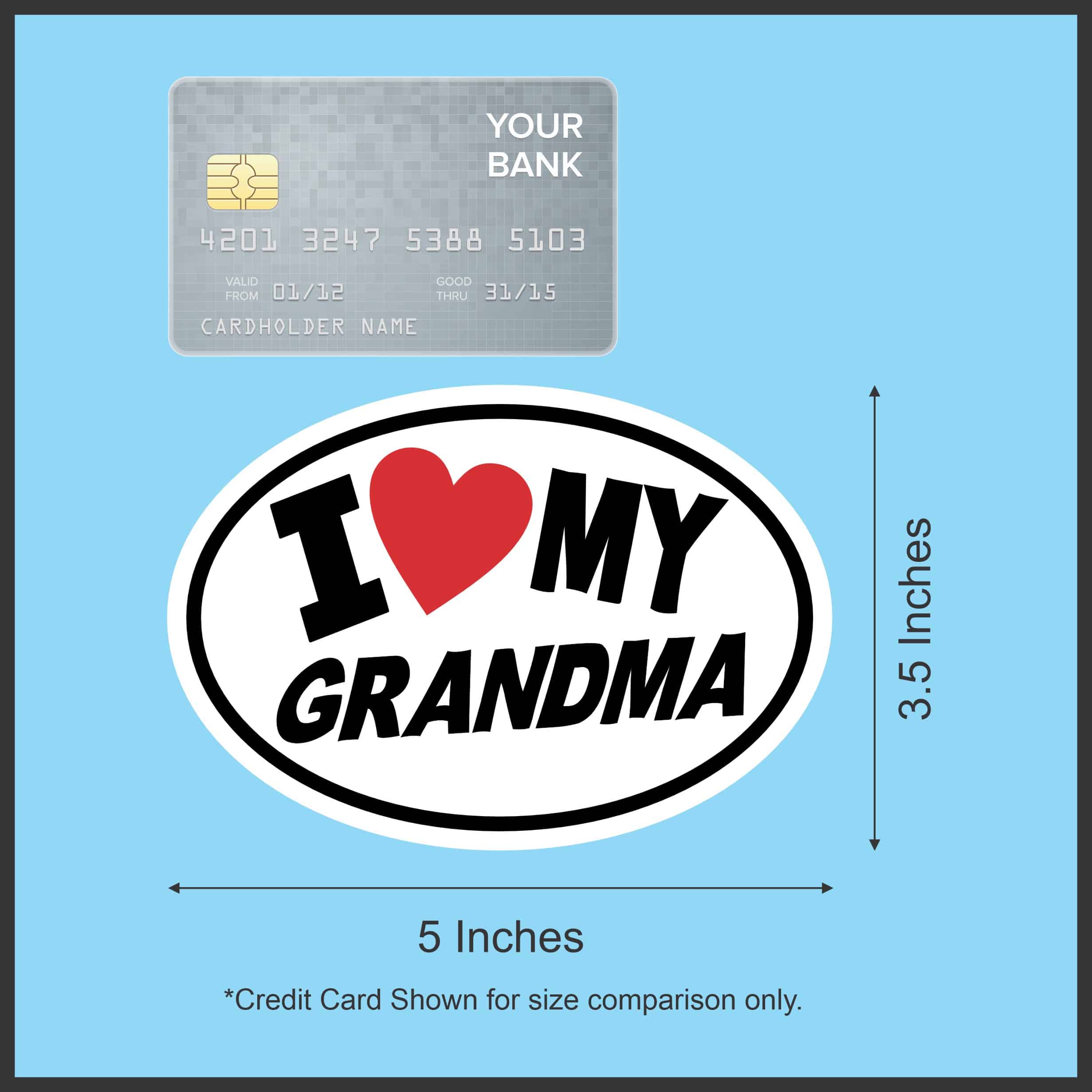 This sticker measures 5 inches wide by 3.5 inches tall. Show your appreciation for grandma with this heartwarming oval vinyl sticker featuring bold black text “I heart MY GRANDMA” with a bright red heart symbol on a clean white background. Whether you’re celebrating Grandparents Day, Mother’s Day, or simply want to show your love year-round, this charming sticker makes a perfect gift or personal statement piece.