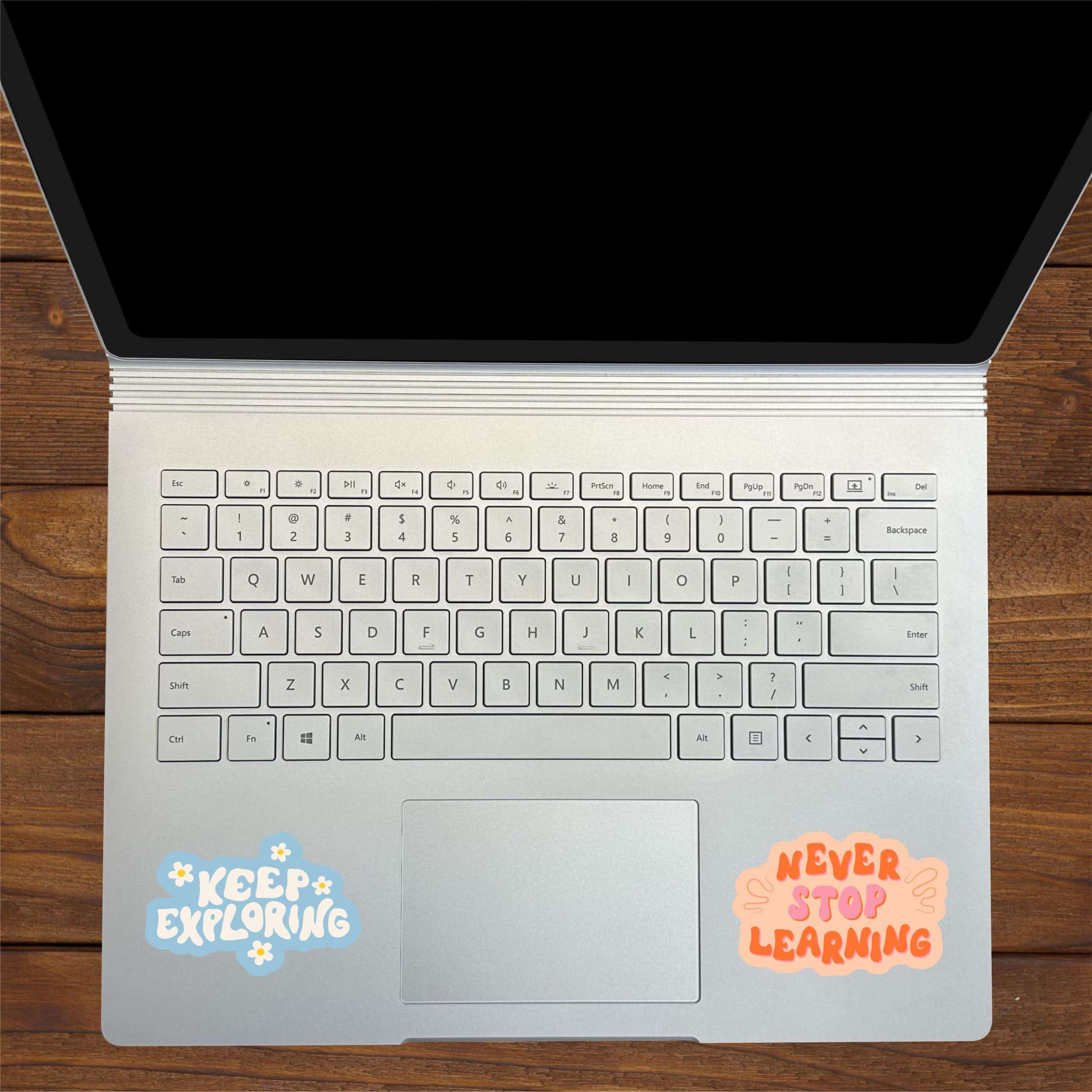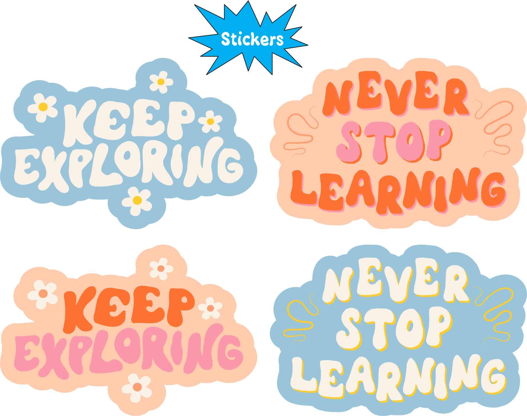 The vibrant typography combines playful fonts with motivational messaging that encourages lifelong learning and exploration. Each sticker in the set offers a unique color combination while maintaining a cohesive aesthetic theme. The removable adhesive ensures clean removal without damaging surfaces, making them ideal for temporary decoration or seasonal displays.