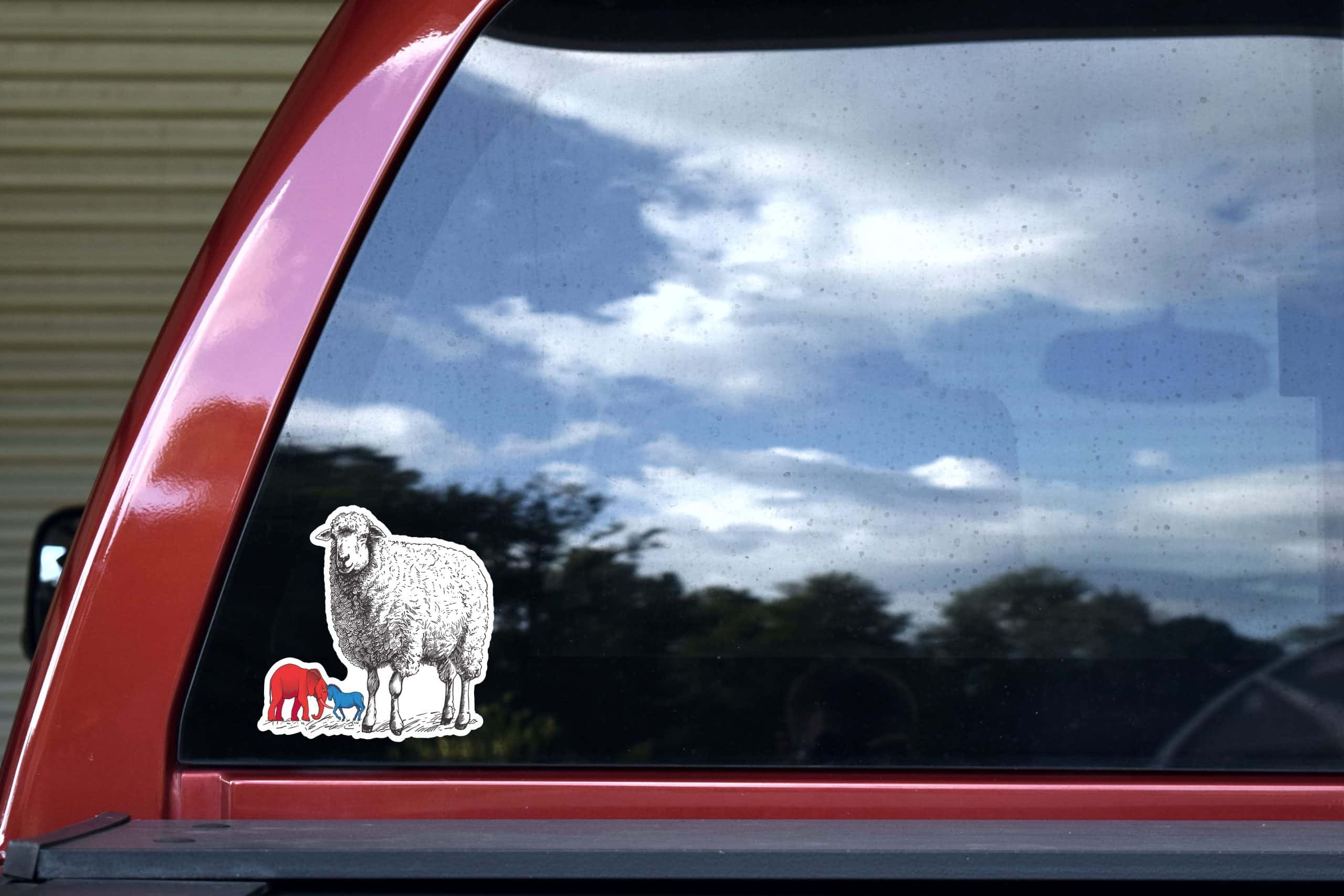 5 inches by 5 inches (127 mm x 127 mm) Lamb Greater than Political Parties Vinyl Sticker