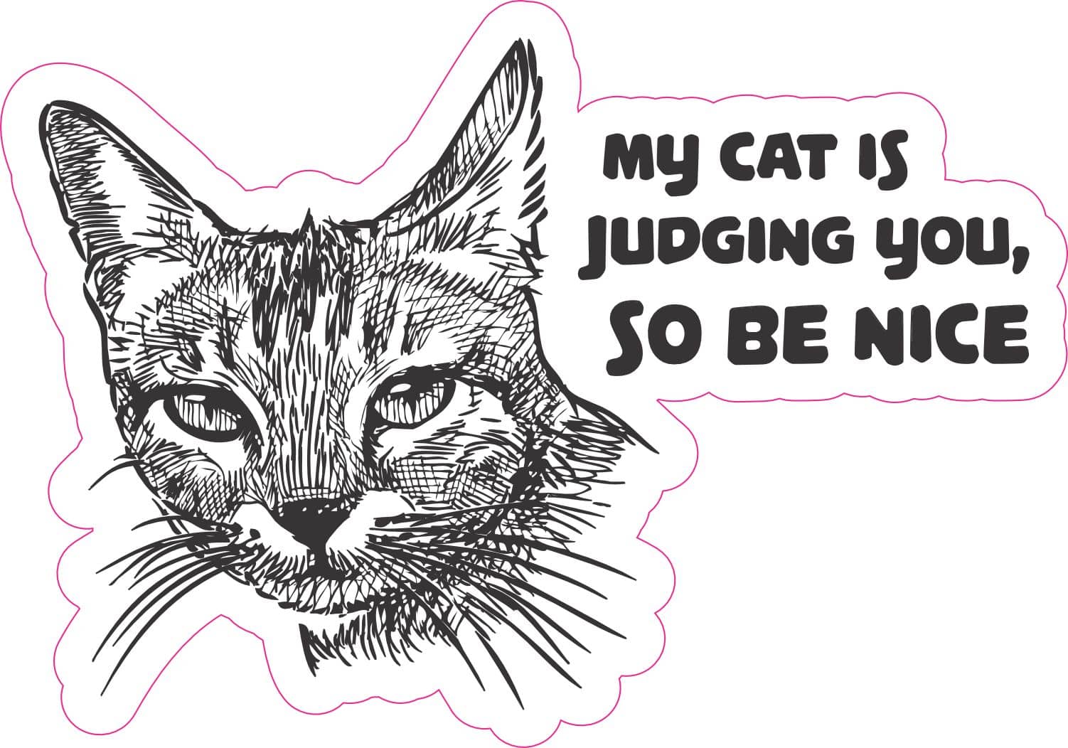 StickerTalk My Cat Is Judging You So Be Nice Vinyl Sticker, 5 inches x 3.5 inches