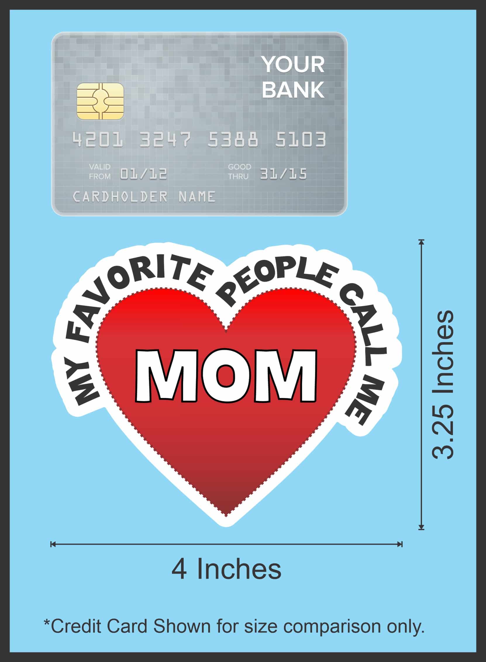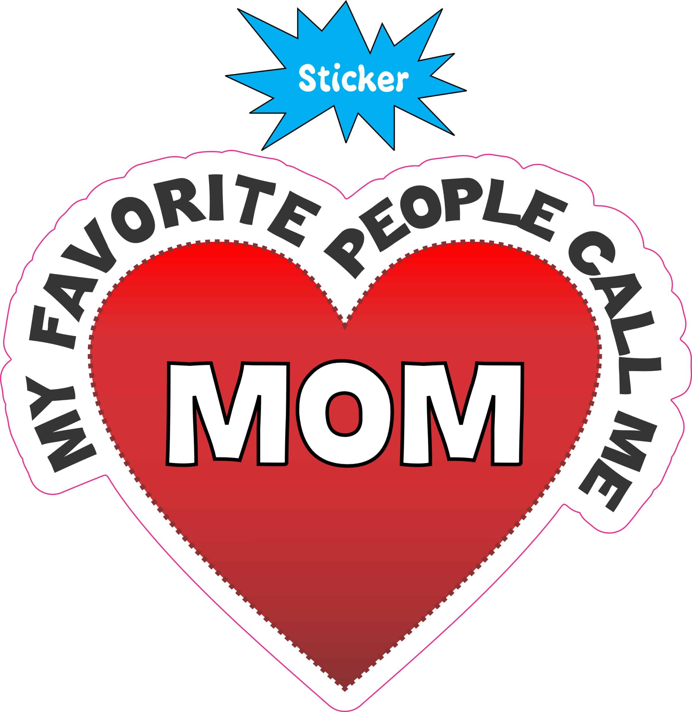 This sticker measures 4 inches wide by 3.25 inches tall (101.6 mm x 82.6 mm). Show off your mom pride with this beautiful heart-shaped vinyl sticker featuring the touching message “My Favorite People Call Me Mom” in bold white letters against a vibrant red heart background. The decorative white border adds an elegant finishing touch to this meaningful design.