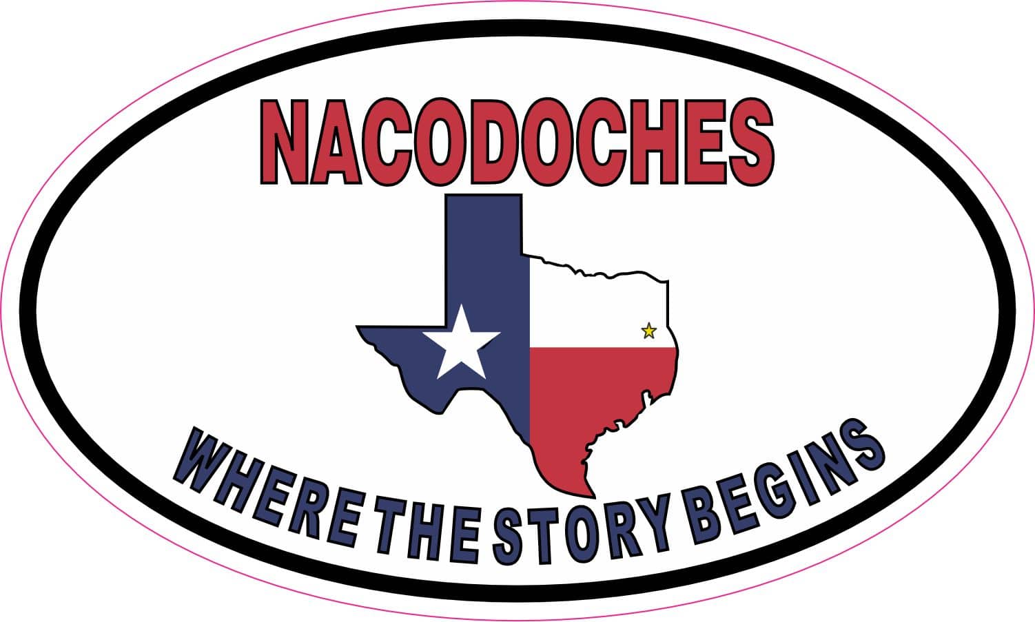 5 inches by 3 inches (127 mm x 76.2 mm) Nacogdoches Where the Story Begins Travel Sticker