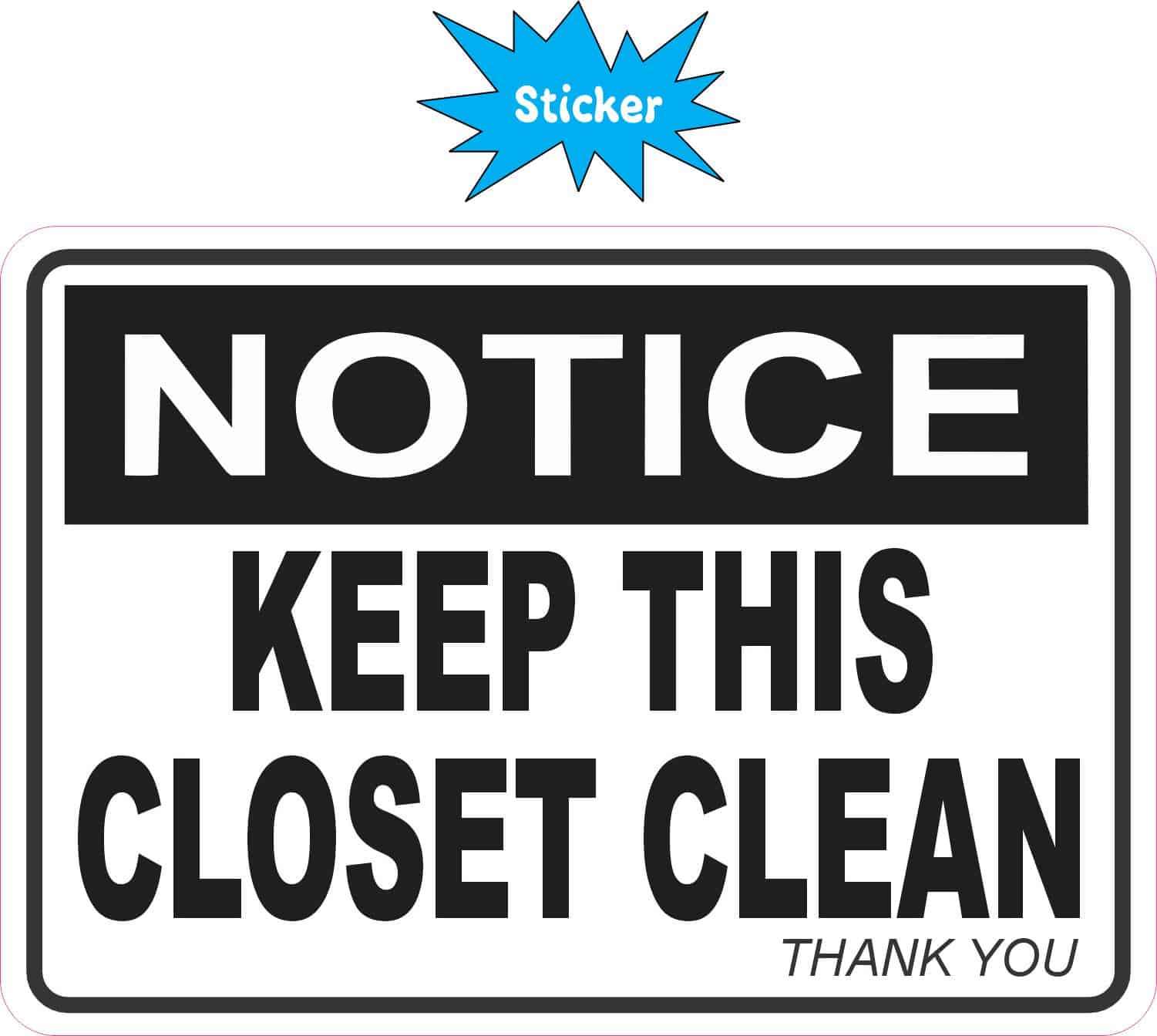 StickerTalk Notice Keep This Closet Clean Vinyl Sticker, 5 inches by 3.5 inches