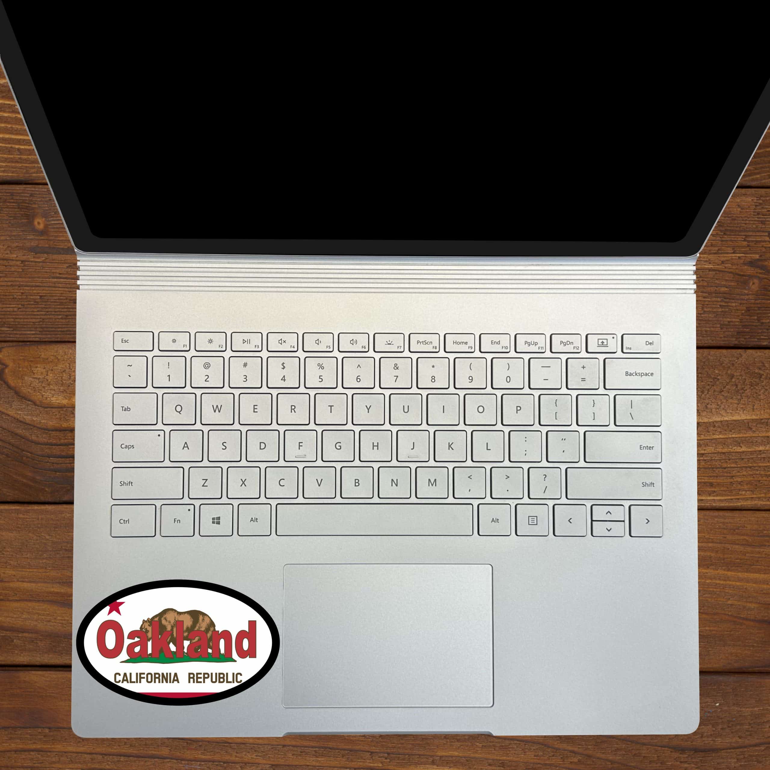 4 inches by 2.5 inches (101.6 mm x 63.5 mm) Oakland California Travel Oval Vinyl Sticker