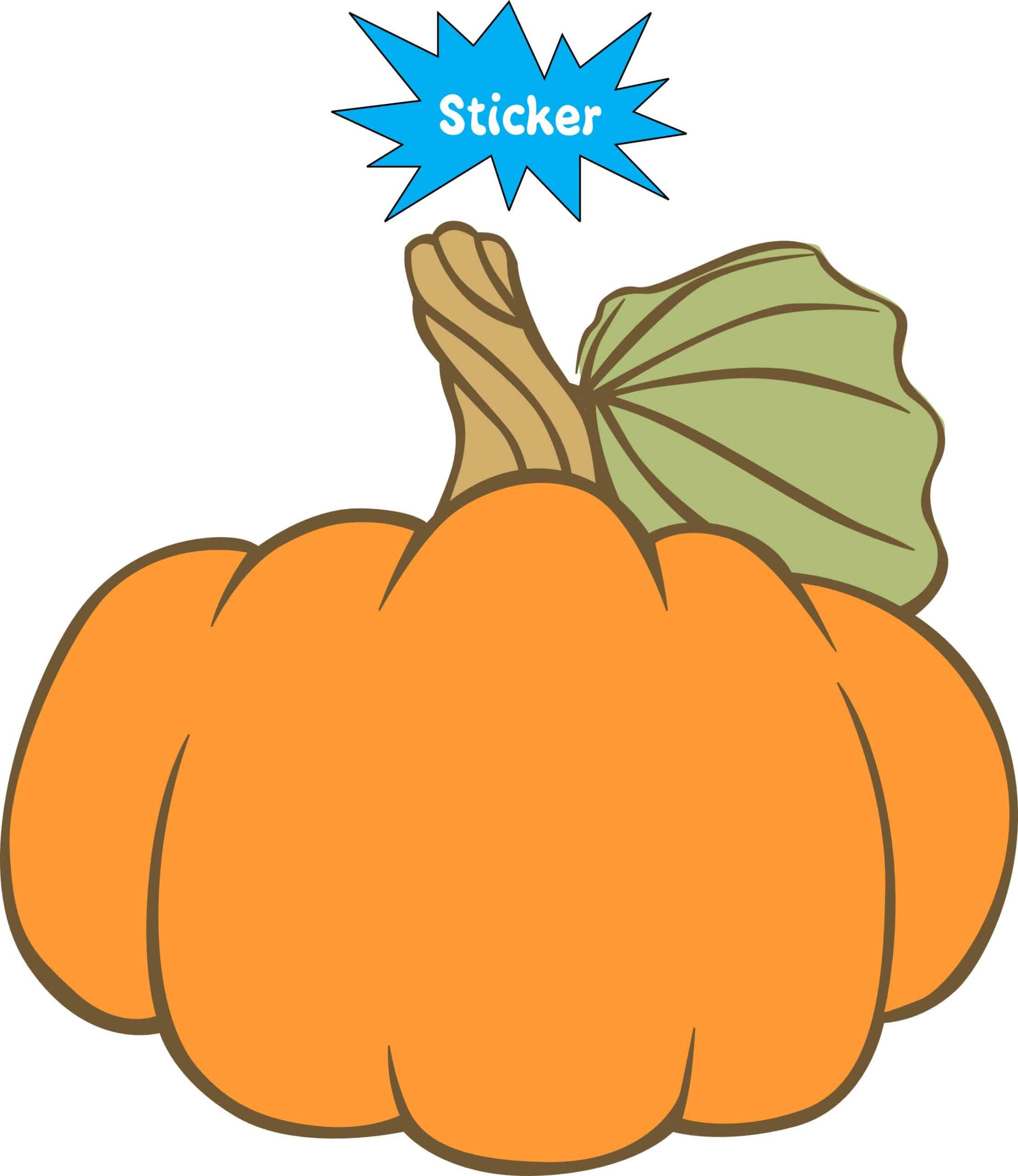 StickerTalk Orange Pumpkin Vinyl Sticker with Green Leaf Design, 4 inches by 3.75 inches