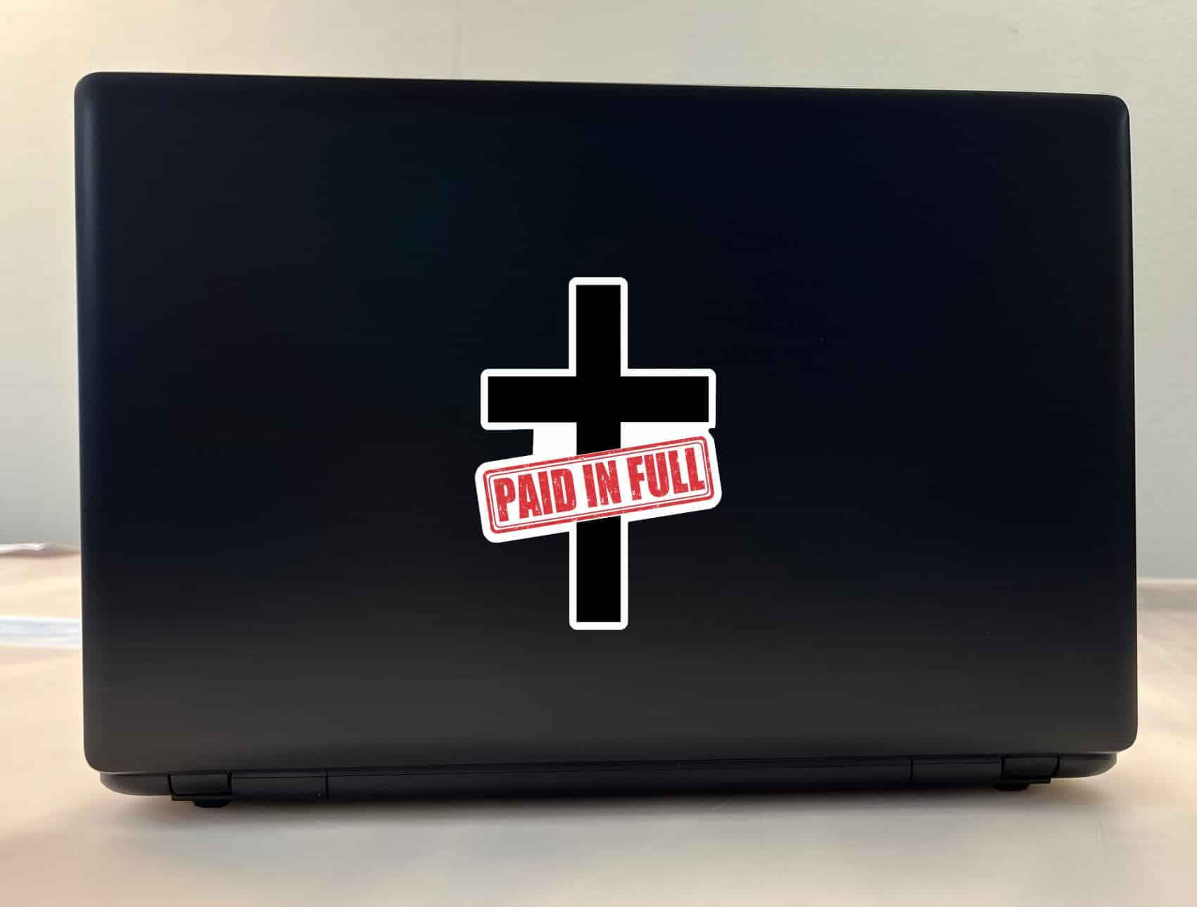 This sticker measures 3.5 inches wide by 5 inches tall. This inspiring Christian vinyl sticker features a bold black cross design with a red “PAID IN FULL” stamp overlay, symbolizing salvation through Christ’s sacrifice. Perfect for expressing your faith on cars, laptops, water bottles, notebooks, or any smooth surface. This Christian-themed sticker serves as a powerful reminder of God’s grace and the ultimate price paid for salvation. Whether as a personal declaration of faith or a meaningful gift for fellow believers, this sticker combines spiritual significance with premium construction quality.