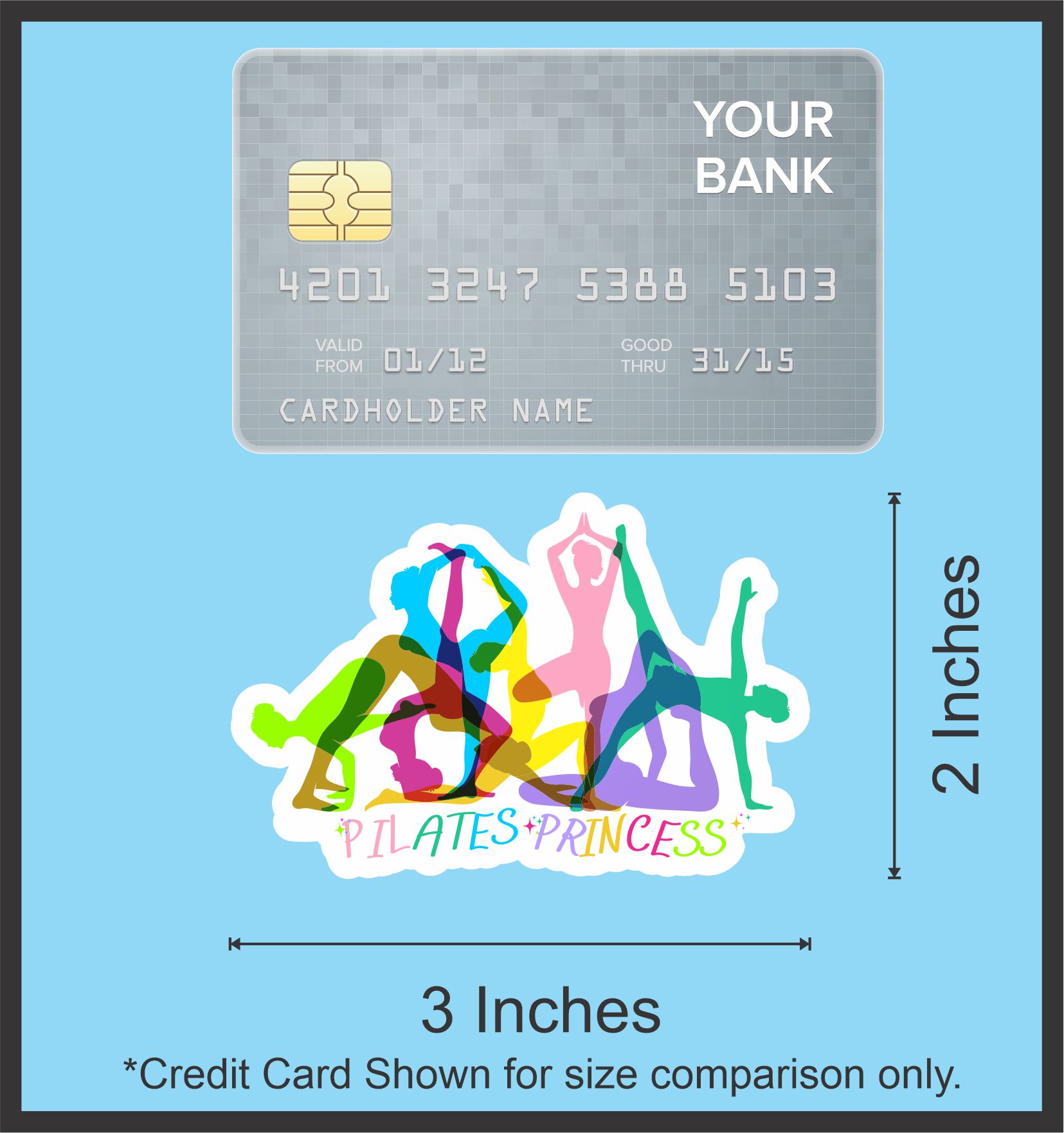 3 inches by 2 inches (76.2 mm x 50.8 mm) Pilates Princess Vinyl Sticker Sheet