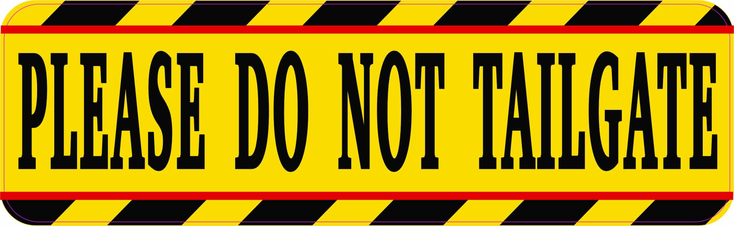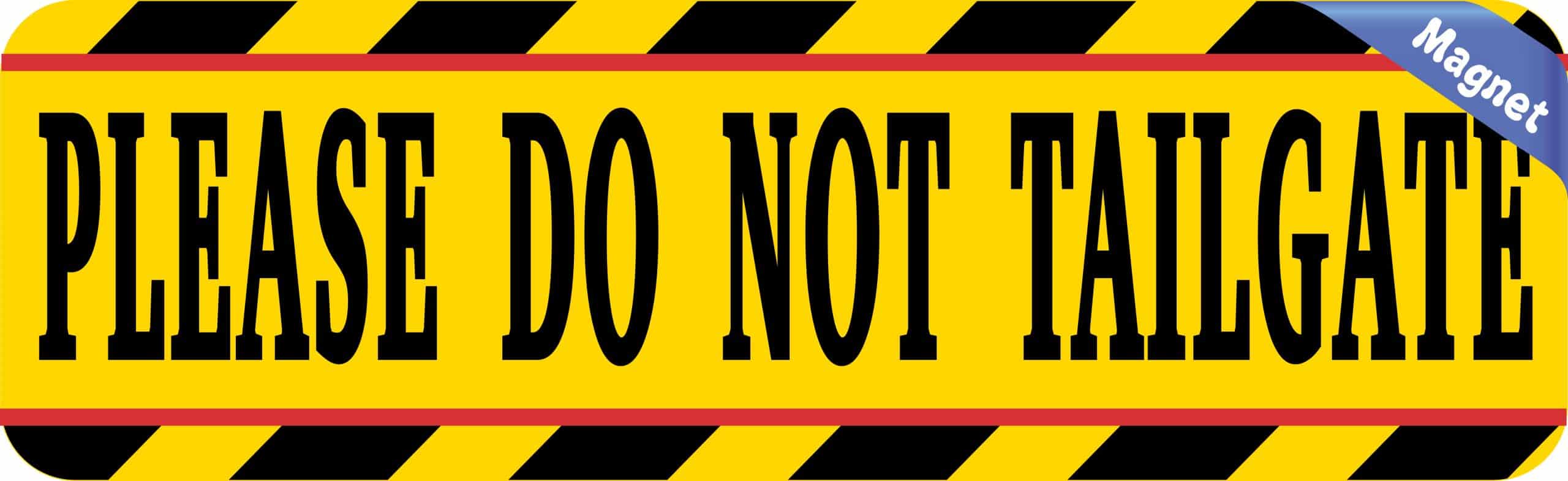 This magnet measures 10 inches wide by 3 inches tall (254.0 mm x 76.2 mm). Display clear traffic safety messaging with this eye-catching yellow and black vinyl magnet featuring bold “PLEASE DO NOT TAILGATE” text. The bright yellow background with black lettering and diagonal safety stripes ensures maximum visibility and readability from a distance.
