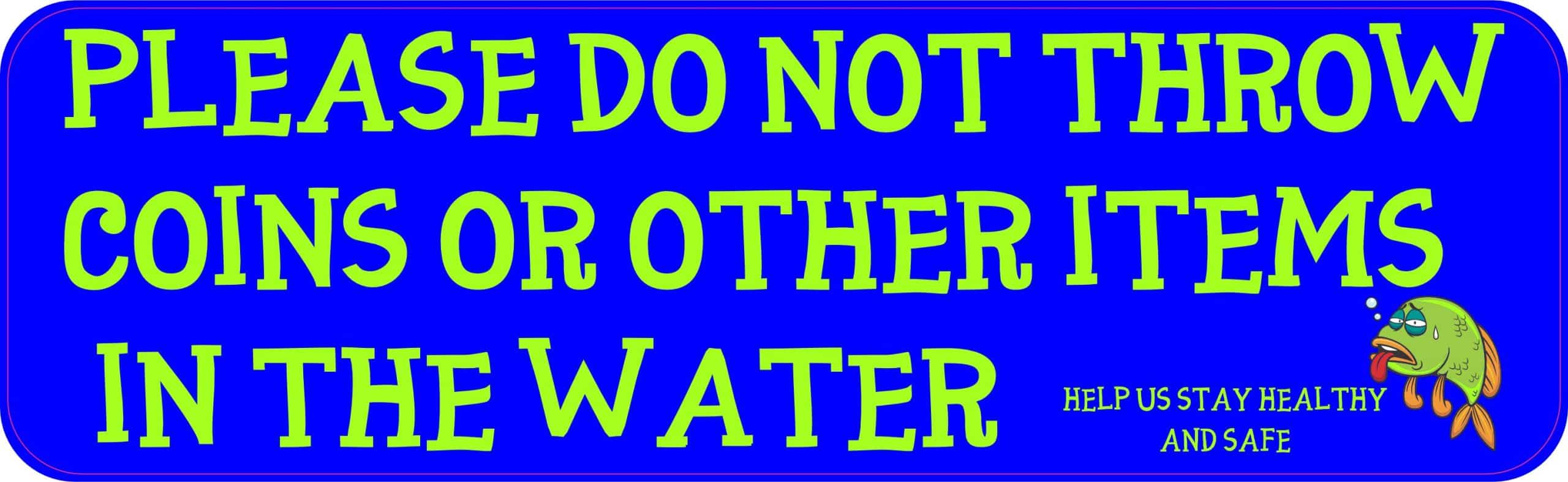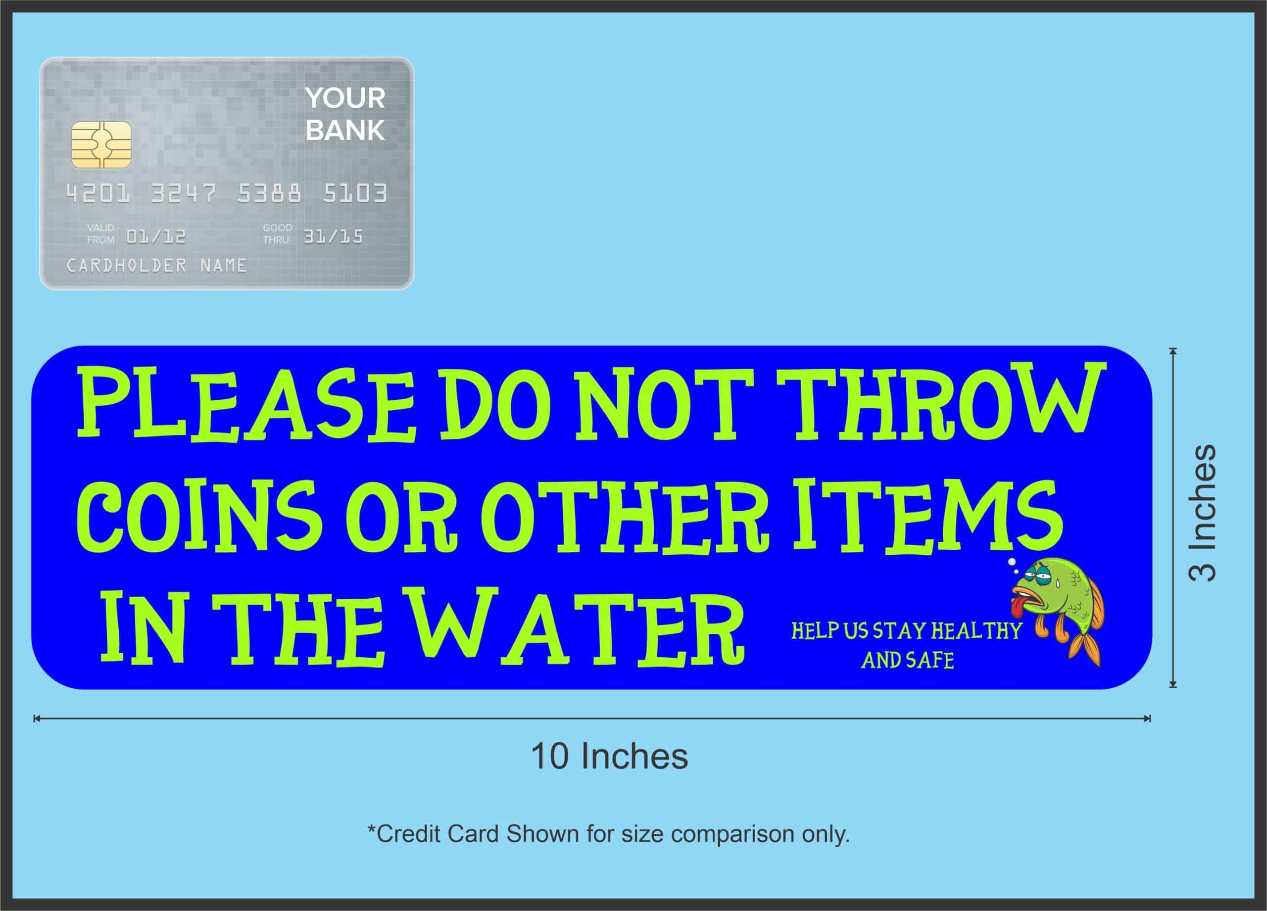 StickerTalk Please Do Not Throw Coins Fish Safety Vinyl Sticker, 10 inches by 3 inches