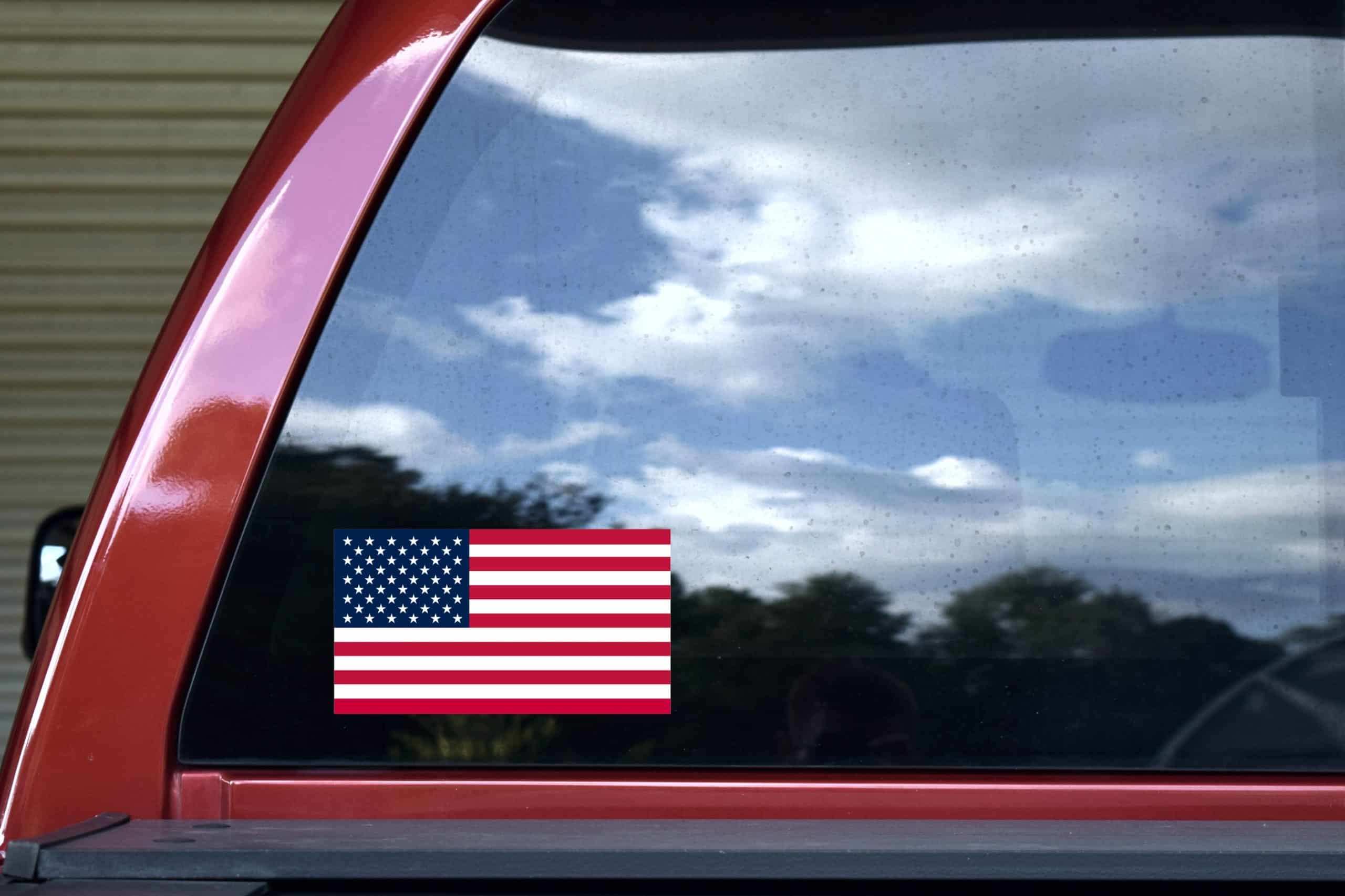 7 inches by 3.8 inches (177.8 mm x 96.5 mm) Proportional USA Flag Set of Five Vinyl Stickers