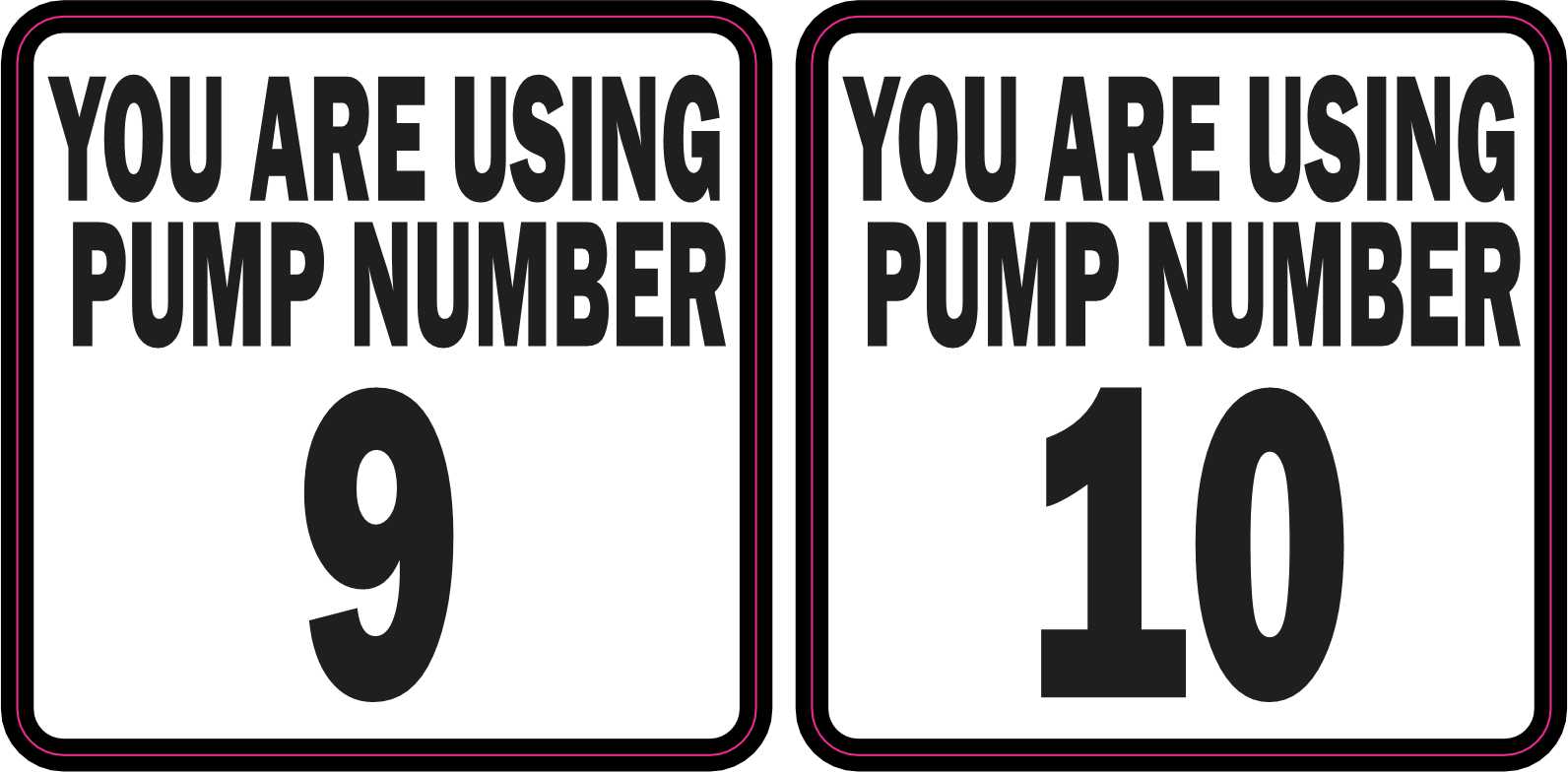 2.5in x 2.5in (63.5mm x 63.5mm) Pump Number 9 and 10 Vinyl Stickers