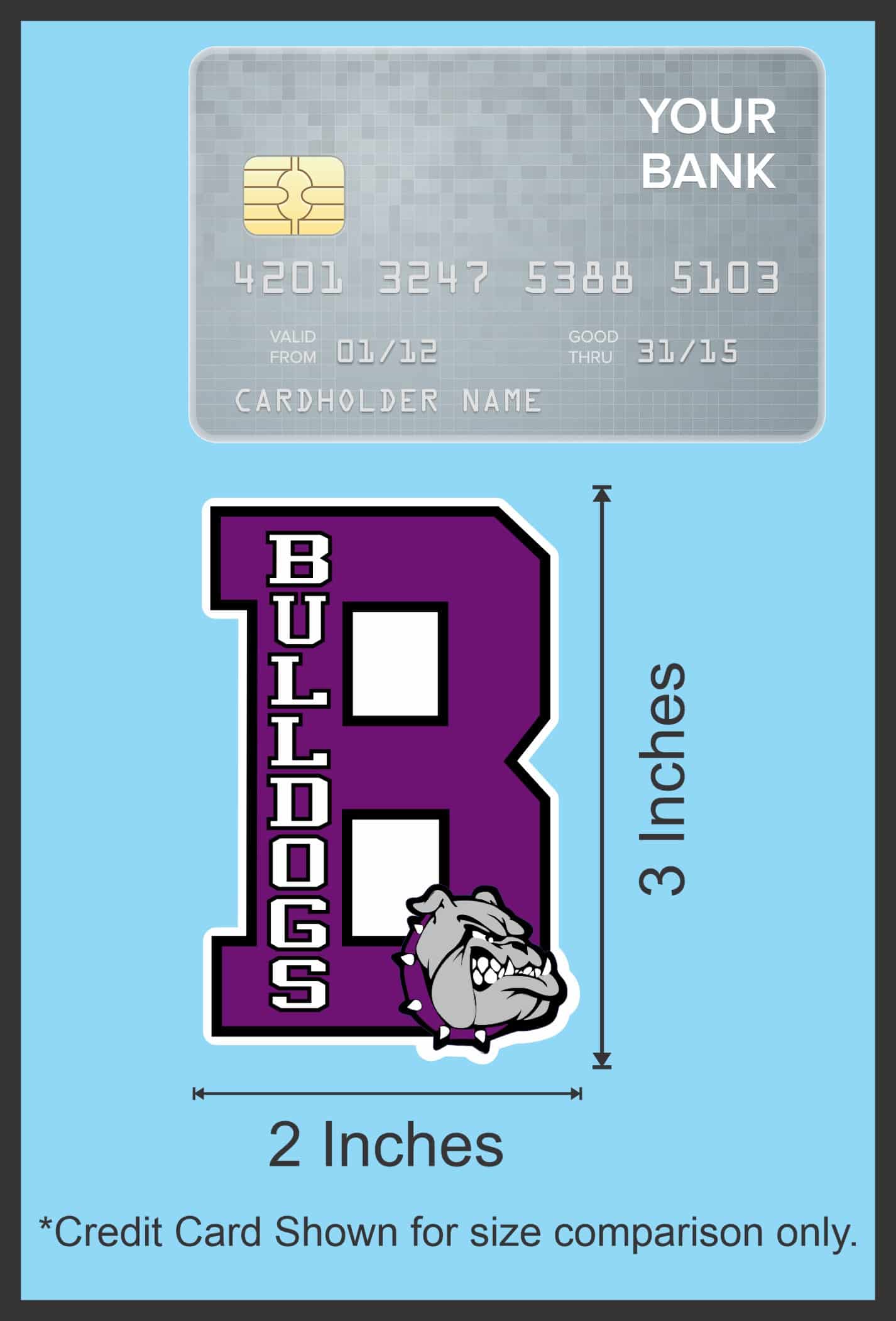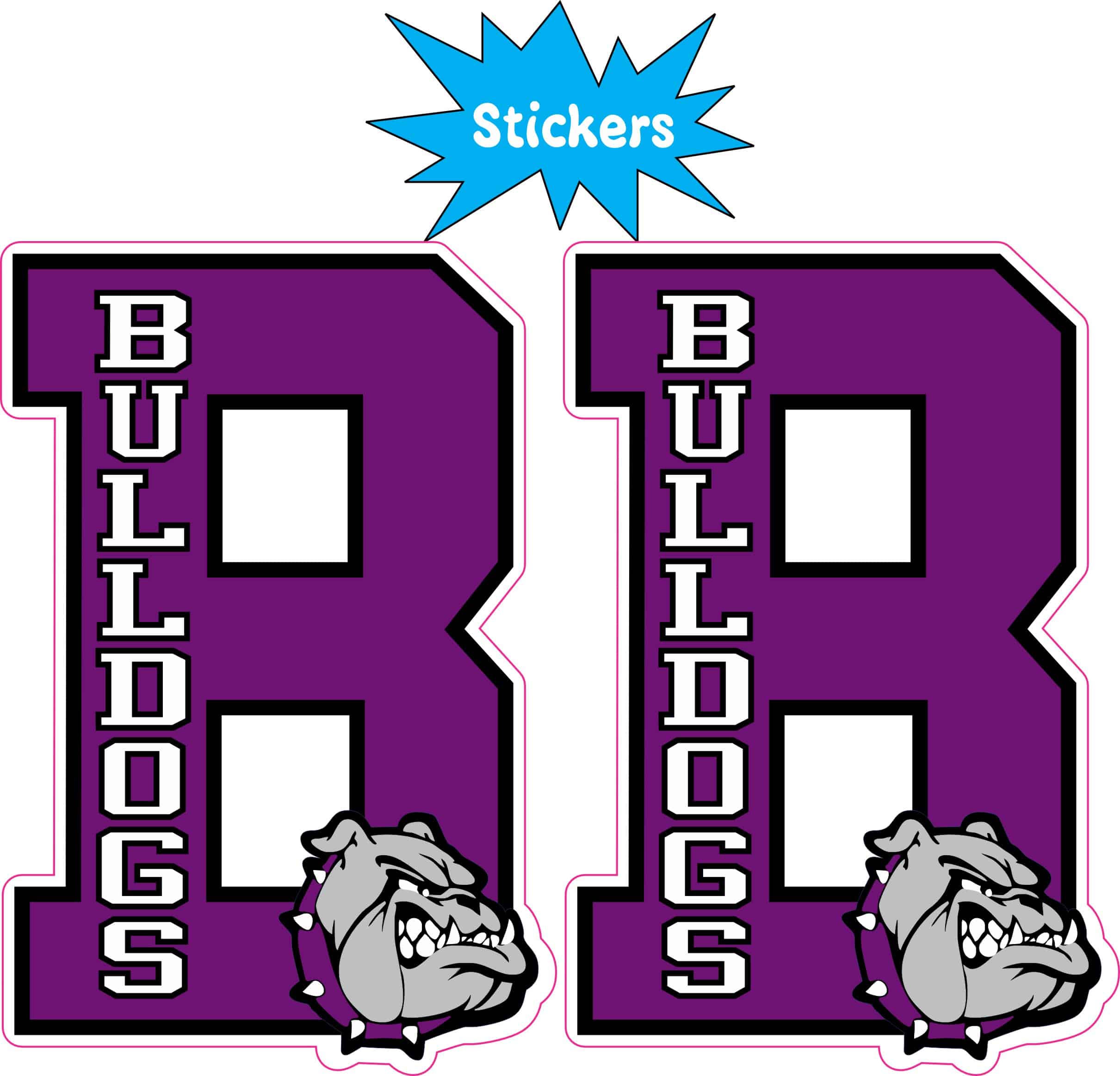This is 1 sheet of 2 stickers, each measures 2 inches wide by 3 inches tall. Show your Bulldogs team spirit with these vibrant purple B vinyl sticker featuring the iconic bulldog mascot head. The bold design displays “BULLDOGS” vertically alongside the prominent B. Whether you’re a player, parent, or fan this sticker is the perfect way to display your team loyalty. The fierce bulldog mascot adds an intimidating touch that represents the strength and determination of the Bulldogs team. They can be applied to any flat smooth surface.
